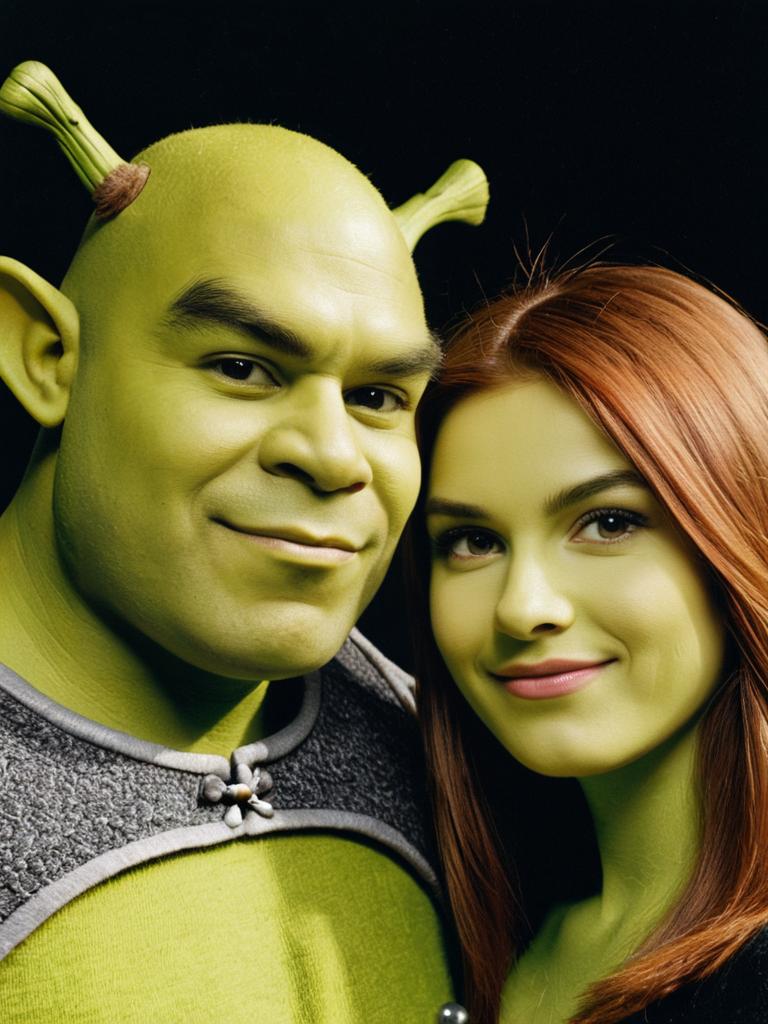 Couple in Shrek and Fiona Costume, close-up detailed headshot duo
