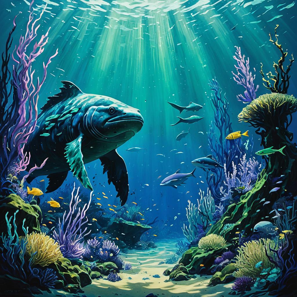 A group of vibrant Madagascan lemurs depicted in dynamic poses amidst a tropical dry deciduous forest. The scene features rich burnt orange, beige, and dark olive tones with rough brush strokes, inspired by Studio Ghibli's art style. The lemurs have distinct black and white facial markings and striped tails, set against a backdrop of tall trees and lush vegetation.
