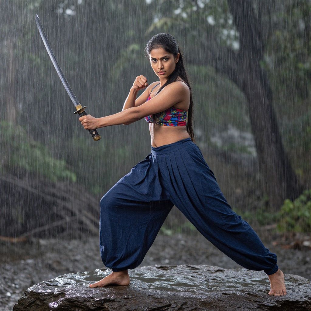 Indian Woman with Japanese Sword in Rain