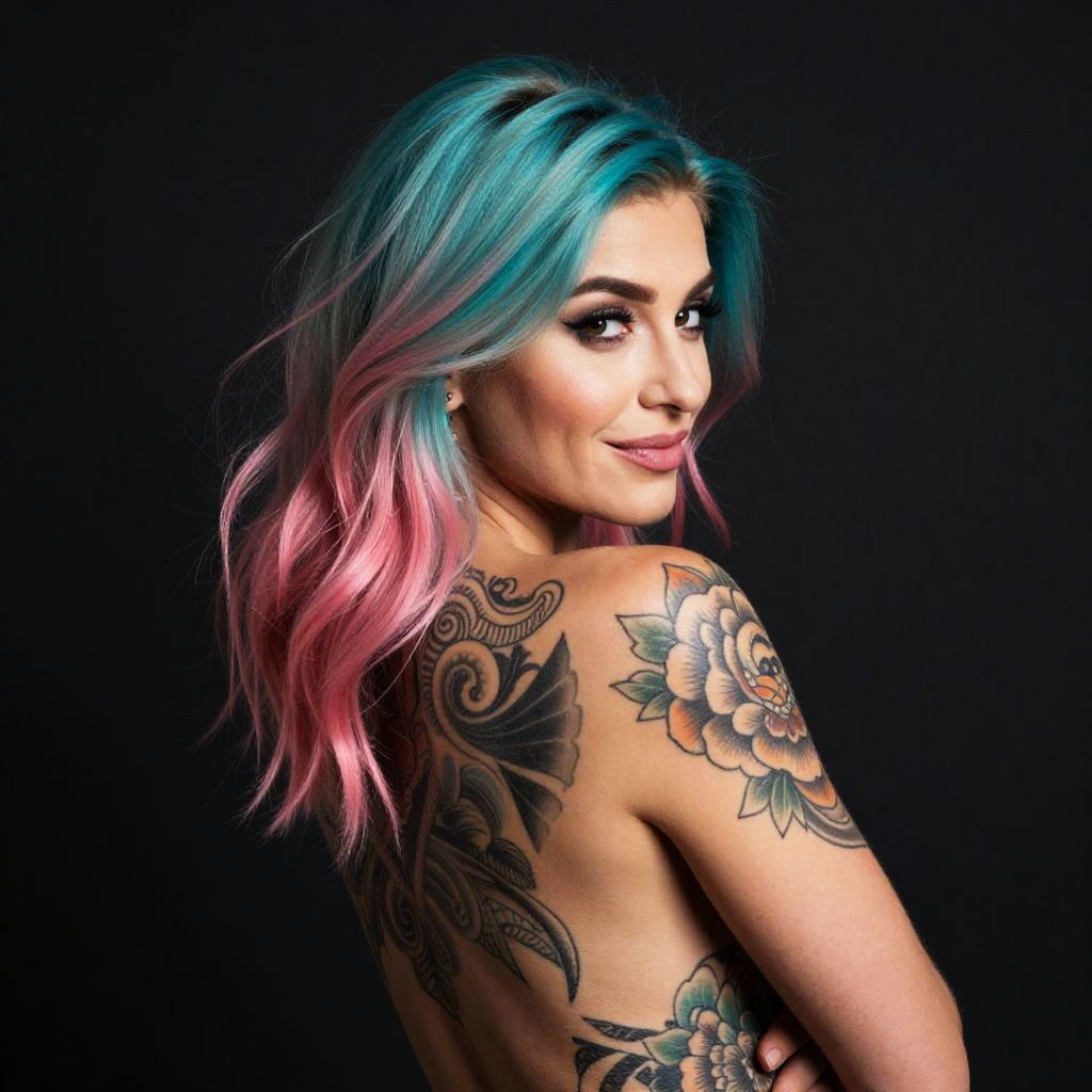 Woman with Turquoise Pink Hair and Tattoo