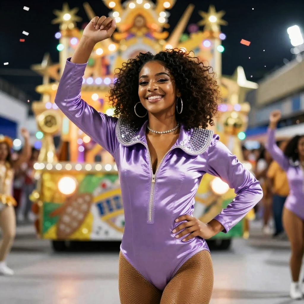 Young woman dressed as a 1920s flapper wearing a floral pattern satin disco shirt with wide collars, high-waisted black skirt, pearl jewelry, and vintage hairstyle, dancing in a speakeasy bar with vintage decor and warm ambient lighting.