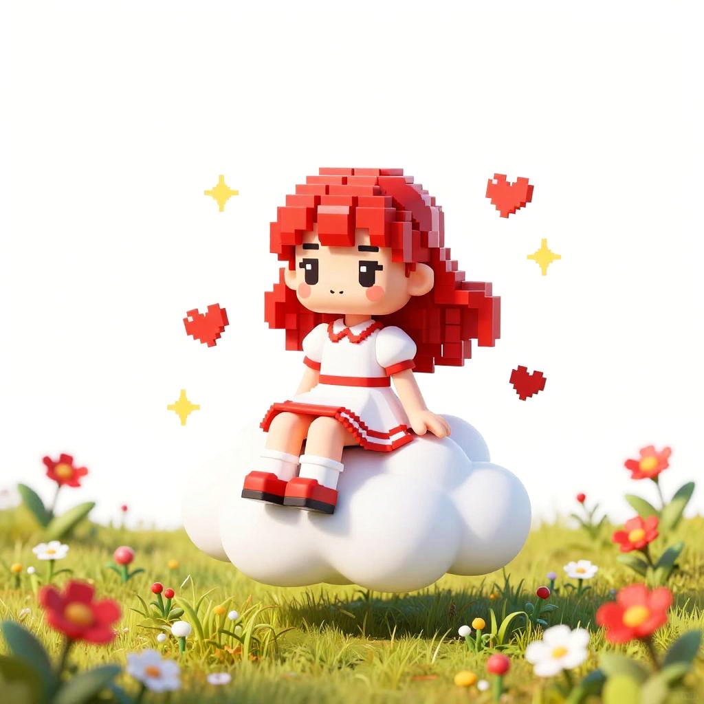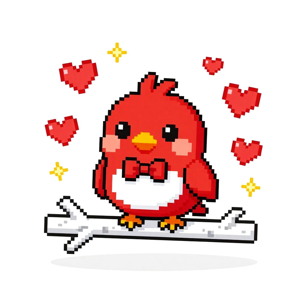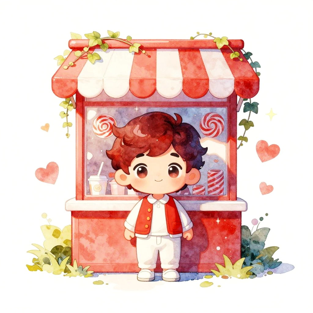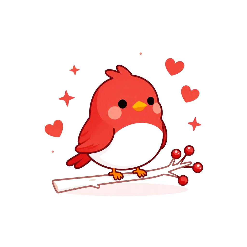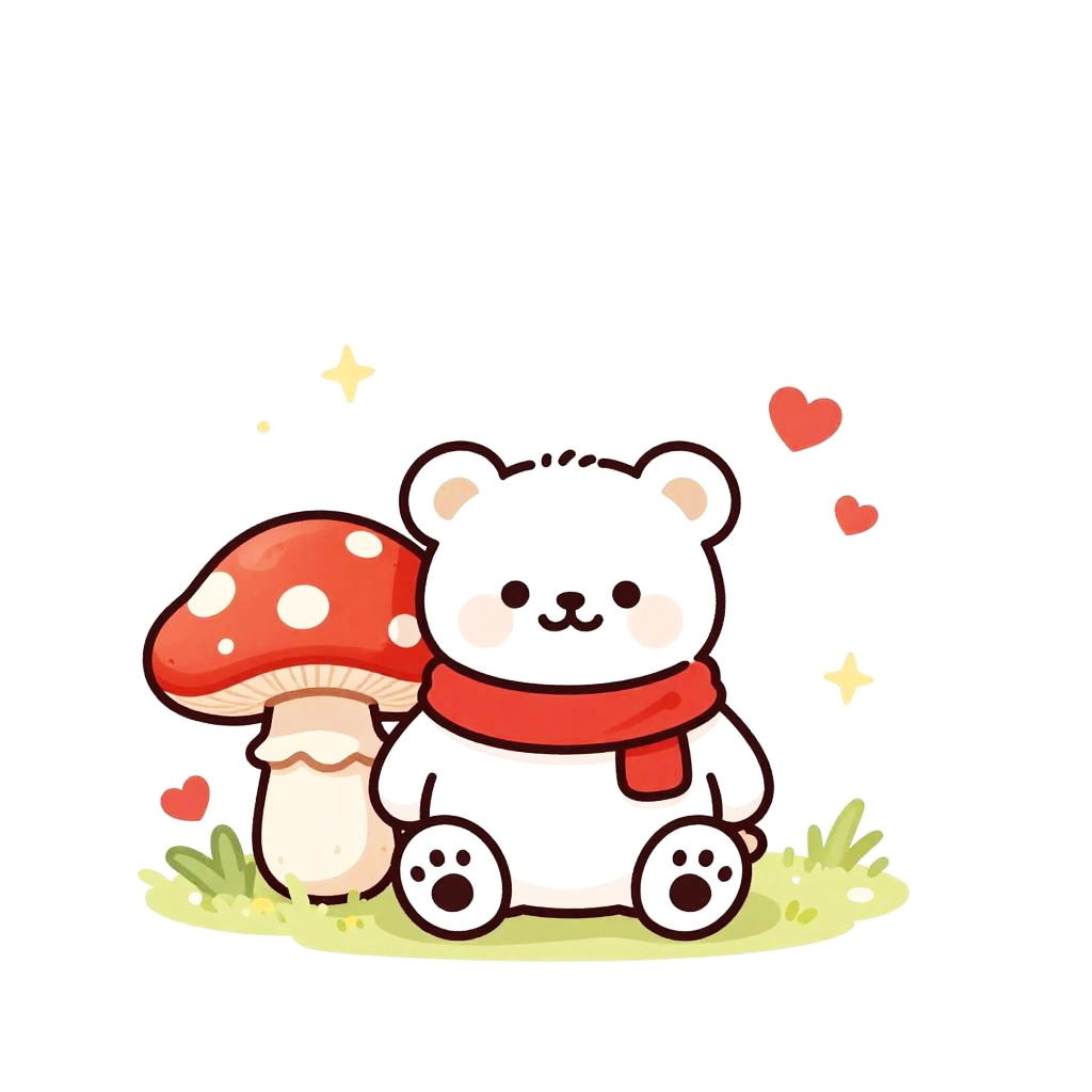 A clean vector illustration of a cute cartoon mouse with round ears, donning a red hooded cape with white trim, peeking out from behind a large white mushroom with red spots in a softly lit glade. Whimsical, playful tone with centered layout, tidy negative space, small hearts and sparkles floating around, coordinated red-and-white outfit, gentle lighting, soft shadows, crisp details, high resolution, polished finish.