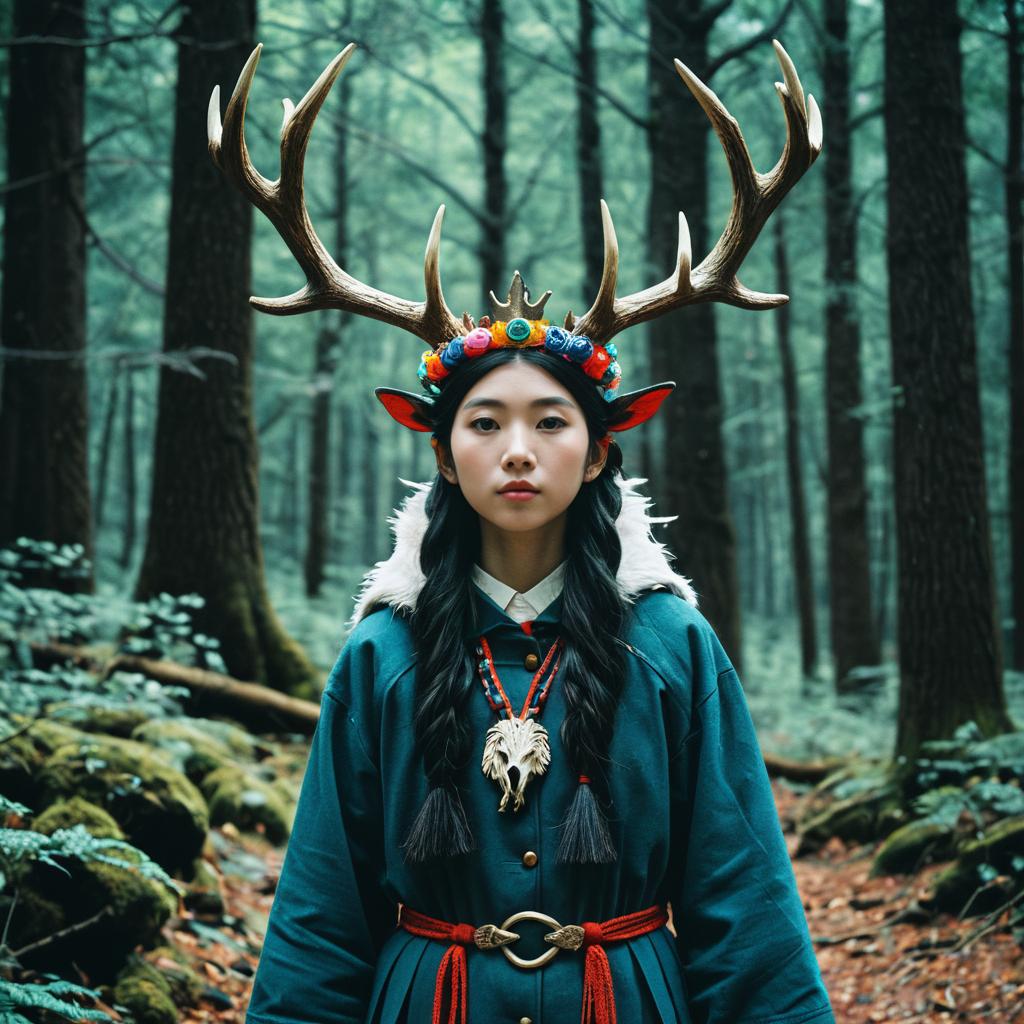 A giant robot amidst trees in the woods, trending on ArtStation, 135mm, analog, vibrant colors, digital art by Tetsuya Tashiro, H.R. Giger