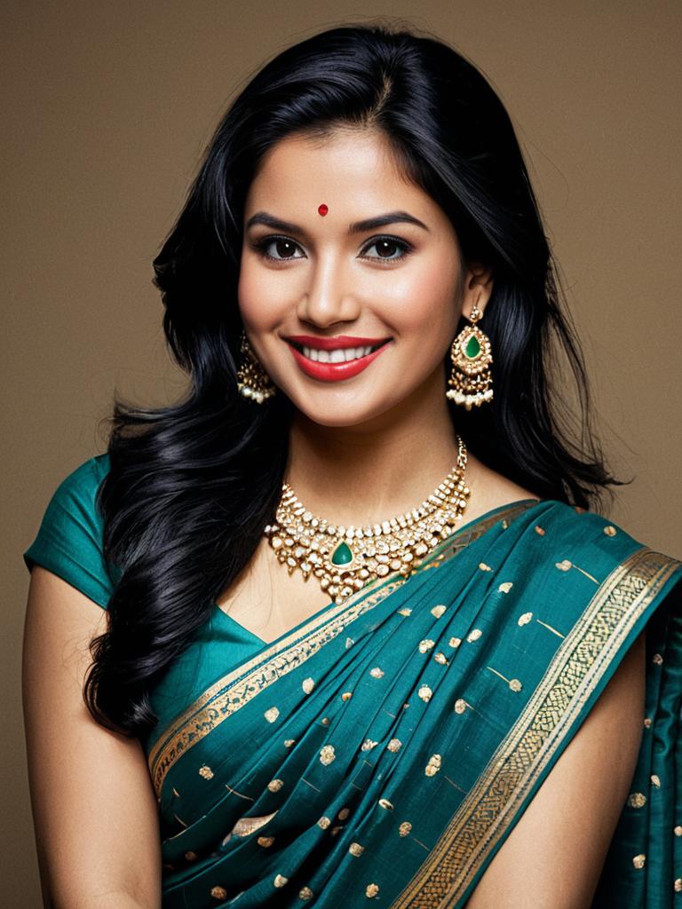 Realistic Woman in Saree with Jewelry