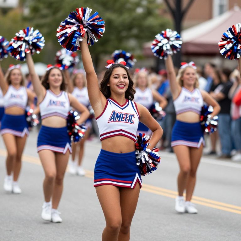 The Spirit of America cheerleaders perform in advance of Thursday's parade.