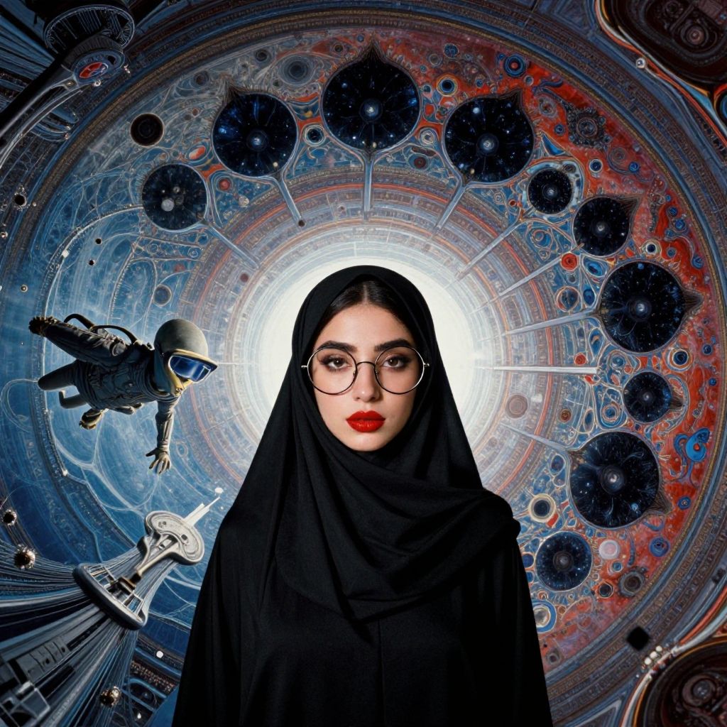 Persian color palette, Persian art, Persian girl, Persian, Iranian, Iran, (burqa)(analog photo:1.2), ((dynamic pose:1.2), (dynamic camera), (amateur photo:1.3, art retouch, analog photo), (close-up) rodian alien Snorkeling, alien planet, (sci-fi:1.5), spaceship, mineralogical fractal, mutation black petals, nuclear reactor interior, photorealistic surrealism tangka, (film grain:1.2), abstract collage, (masterpiece, high quality, fisheye:1.2), solo, model photoshoot, (black theme:1.1), a stylish girl, big lips, round_eyewear, pride, (looking at the viewer), (Francis Drake : 1, 2) ((best quality)), (artistic photography by Philippe Halsman and Ara Gler:1.2), award wining, f/5.6, shutter speed 1/125 sec, iso3200, white balance daylight, exposure compensation "-1.5 ev", shutter priority shooting mode, symmetry and balance, focus mode single, spot metering, aesthetic of precisionism, forward-thinking unrivaled opus, meticulous details, healing art atmosphere, depth of field (dof), (anthraquinone blue and red colors:0.1), 2) (8k, RAW photo, highest quality), hyperrealistic, intricate abstract, intricate artwork, abstract style, otherworldly, mesmerizing parallel dimension, gravity defies logic, abstract masterpiece, interplay of floating objects, distorted silhouettes, vivid hues, ethereal light, highly detailed, Leica Q2 with Summilux 35mm f/1.2 ASPH, clear face, Ultra High Resolution