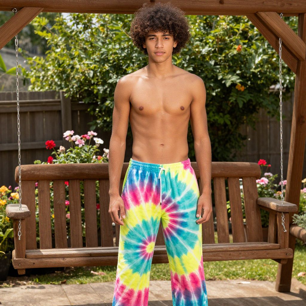 Young Adult in Tie-Dye Joggers Outdoors