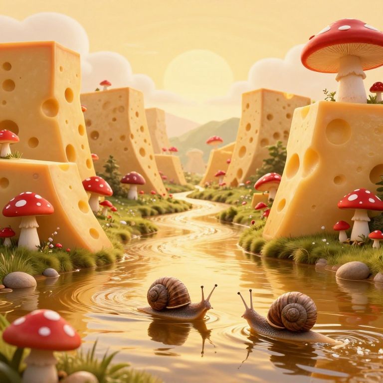 In a whimsical dreamscape where gravity defies logic and time moves in slow, golden hues, snails adorned with parasols traverse marmalade rivers that shimmer like liquid sunlight, embodying a serene journey through the surreal tapestry of imagination and the quiet joy of small wonders.