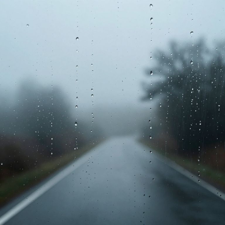 Raindrops cascade like whispered secrets down a glass pane, their melancholic melody dissolving into the misty embrace of a forgotten road, where solitude and longing intertwine in the quiet symphony of a rainy morning.