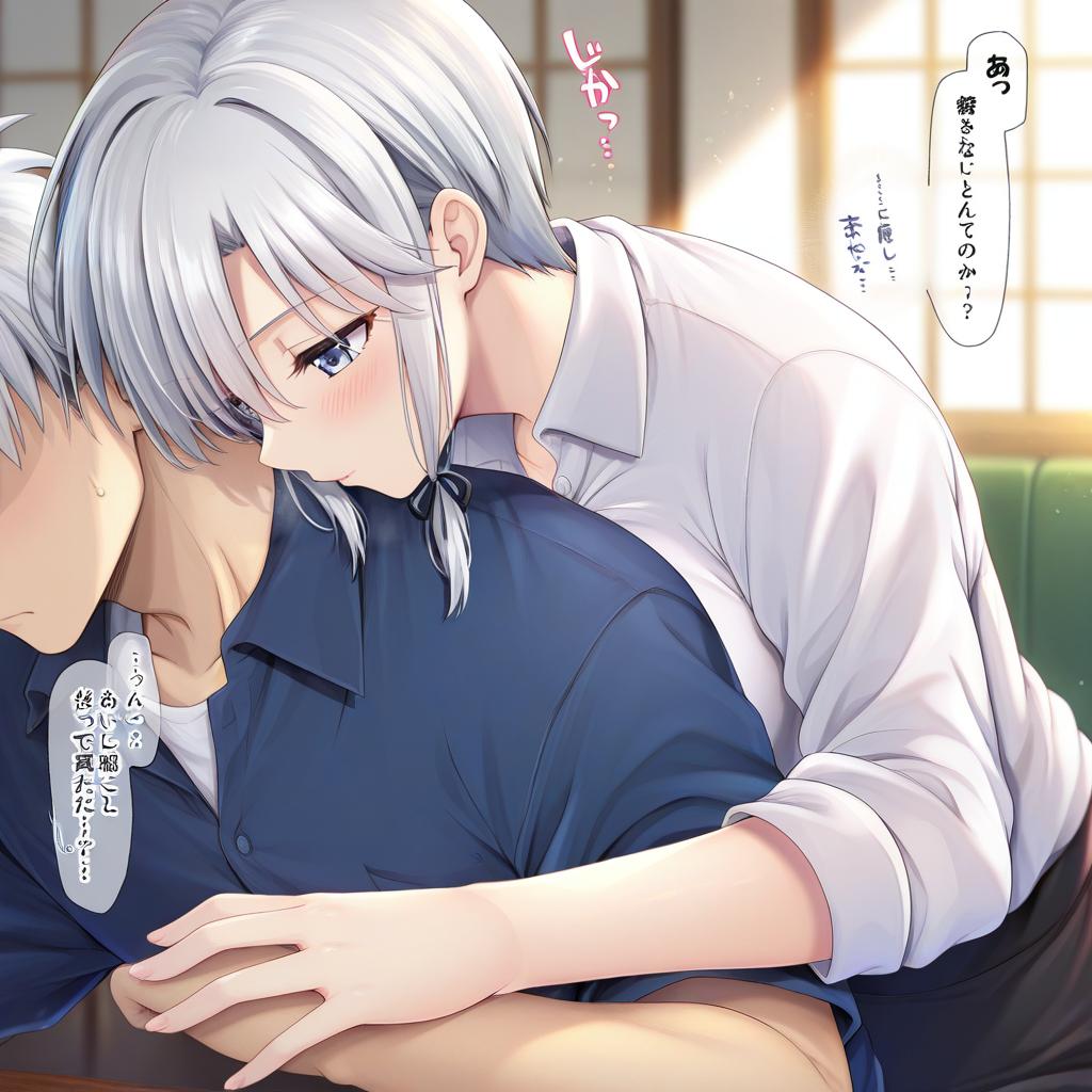 Akagi shigeru, fukumoto mahjong, 1boy, short hair, white hair, grey hair, medium bangs, collared shirt, by artist maruma (maruma gic), illustrious
