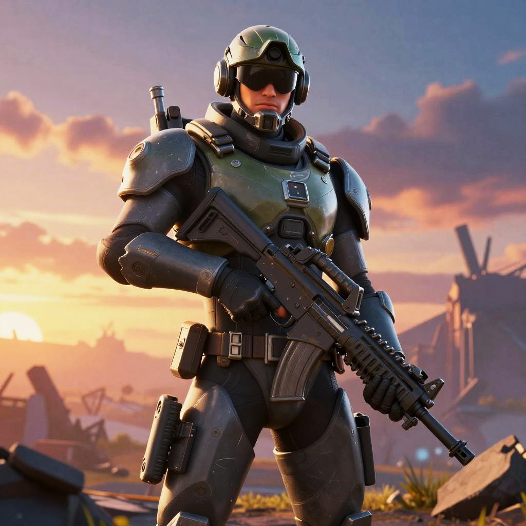 Visor from Quake id Software game photographed on a Fujifilm, rendered in a photorealistic style. The image captures the character with lifelike detail, highlighting intricate textures and features of the helmet. The realistic lighting and high-resolution quality give the scene an authentic, cinematic feel, making the character appear as if they exist in the real world.