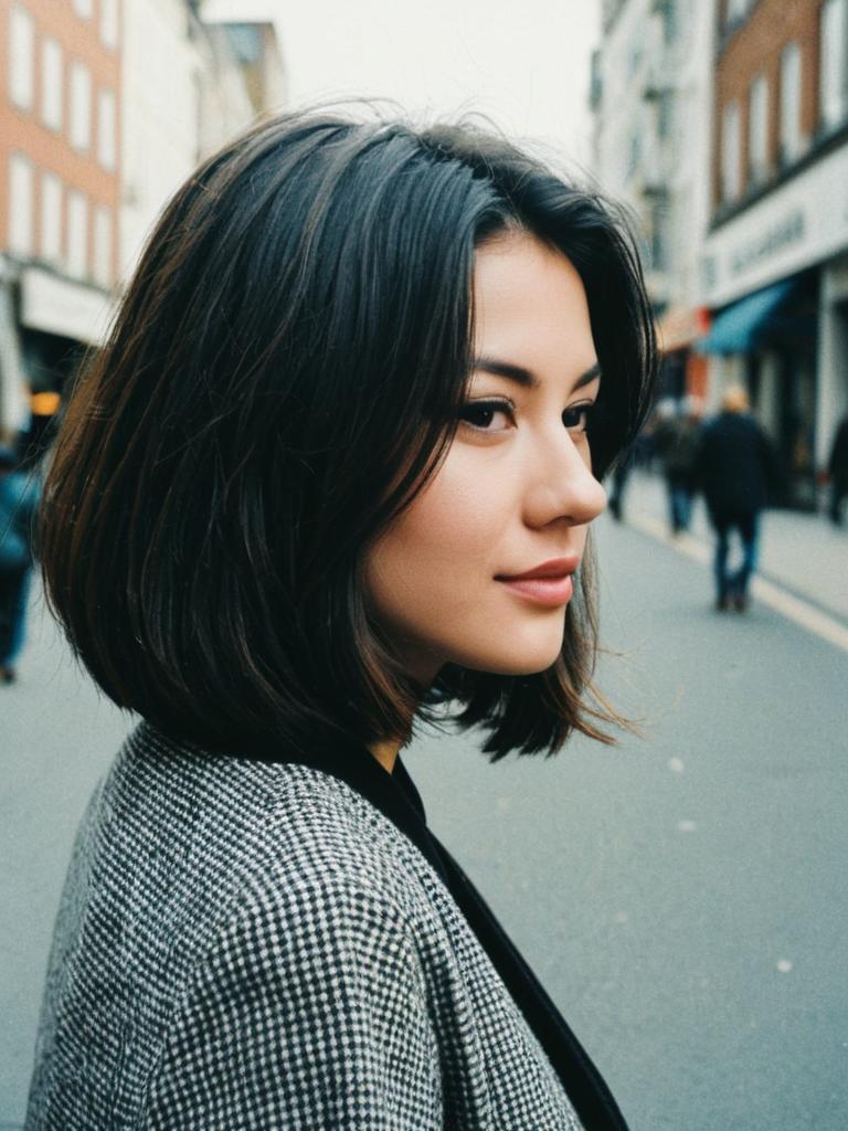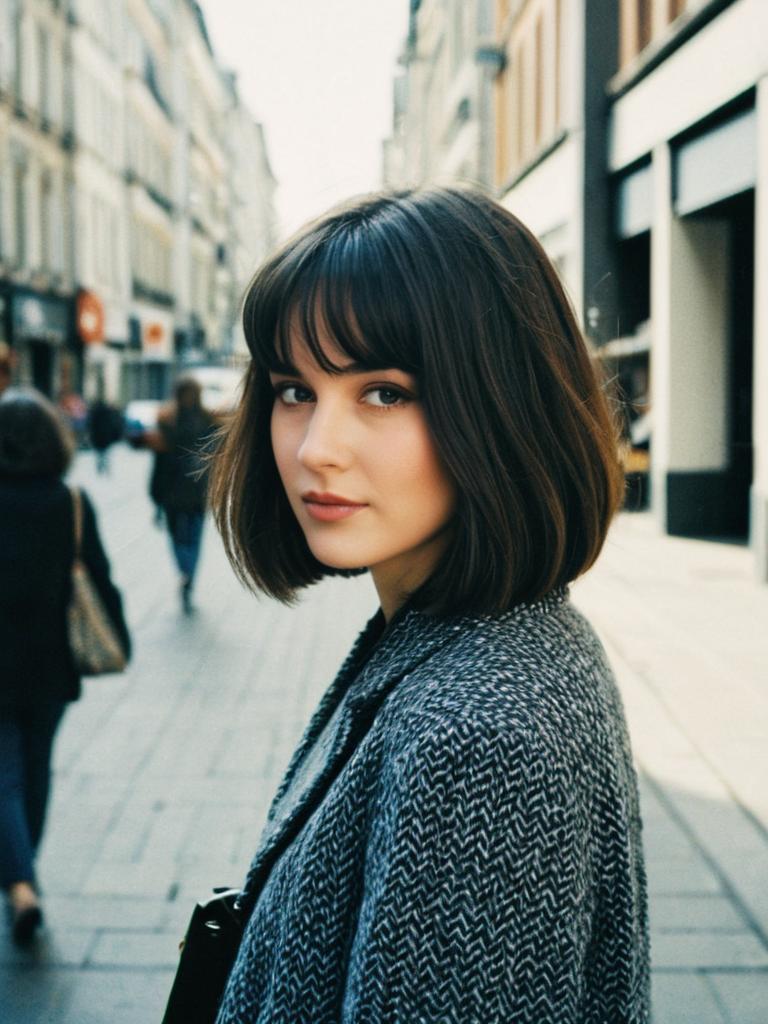 Woman with Long Bob Hairstyle, candid street-style portrait in daylight