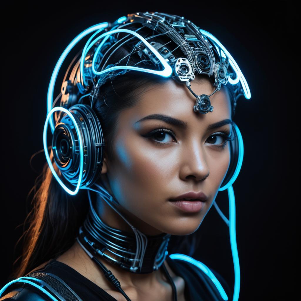 Electrifying Neon DJ with Mechanical Wings