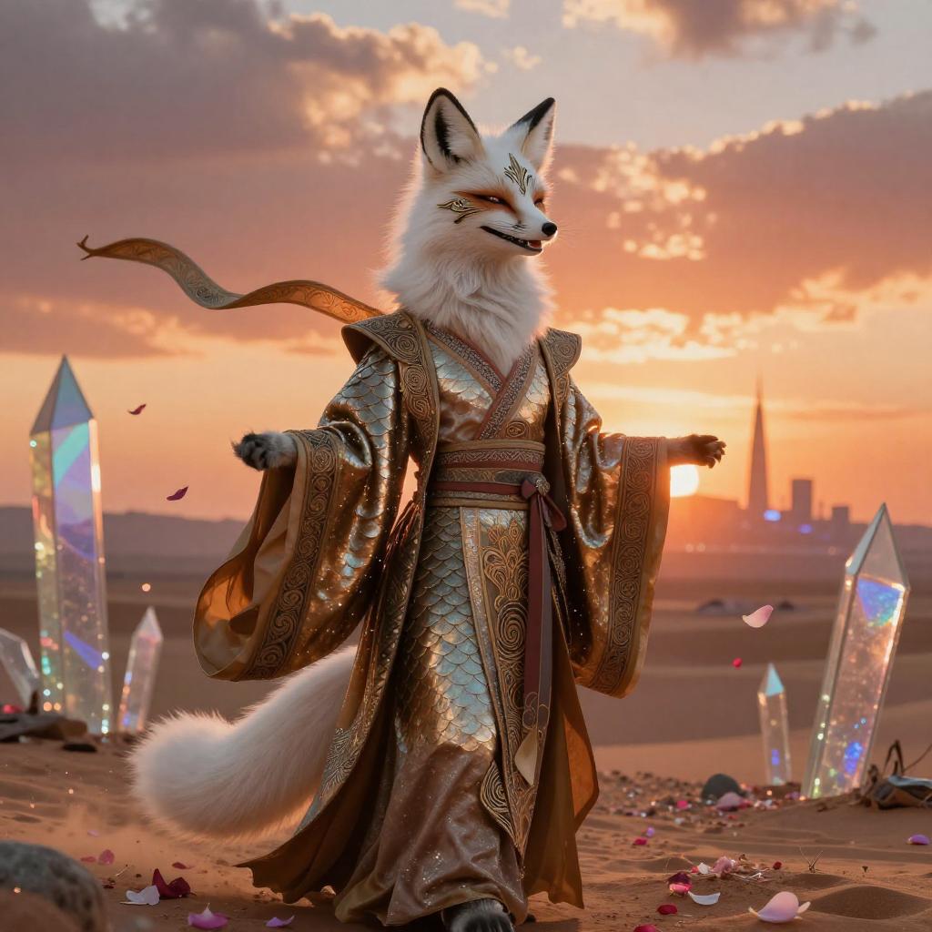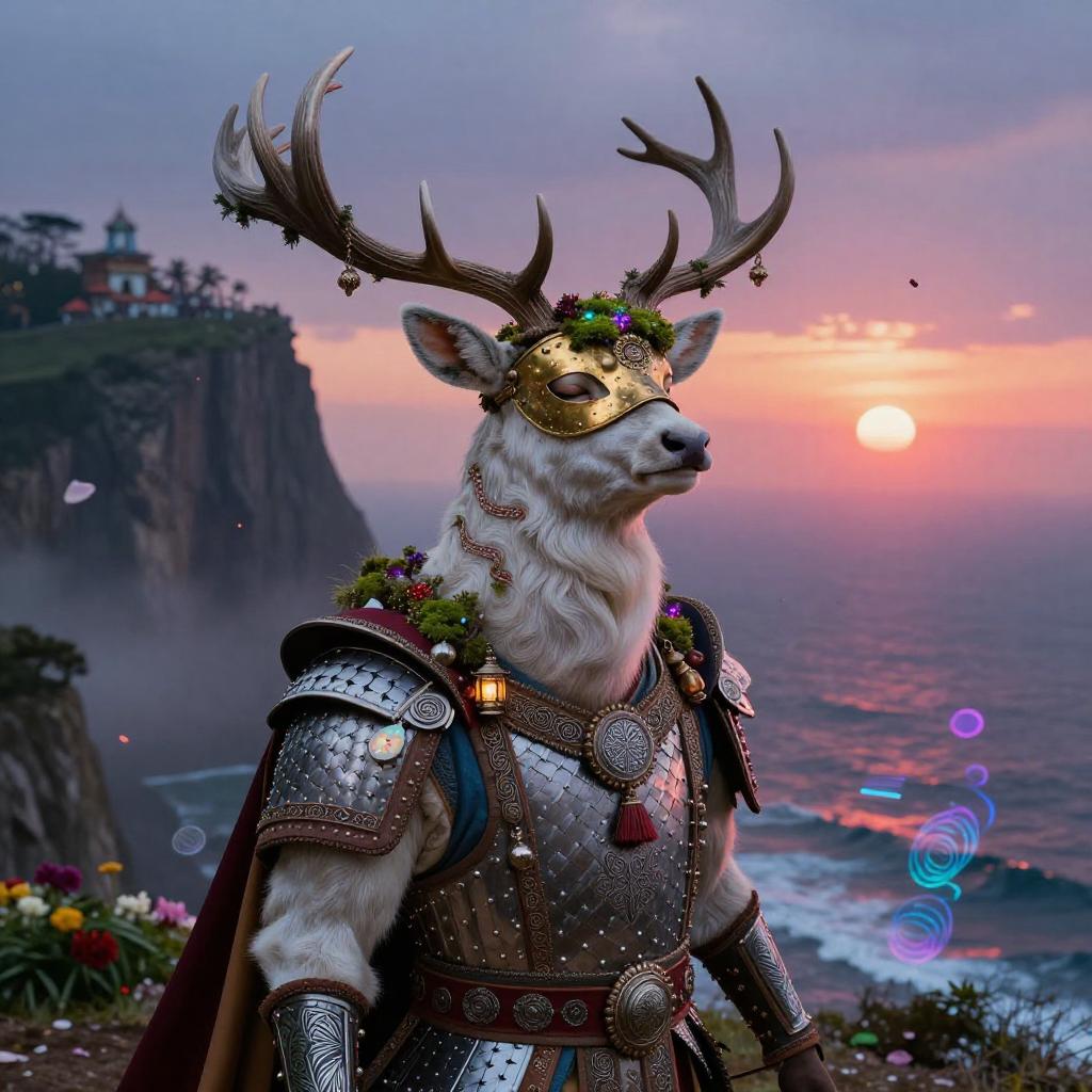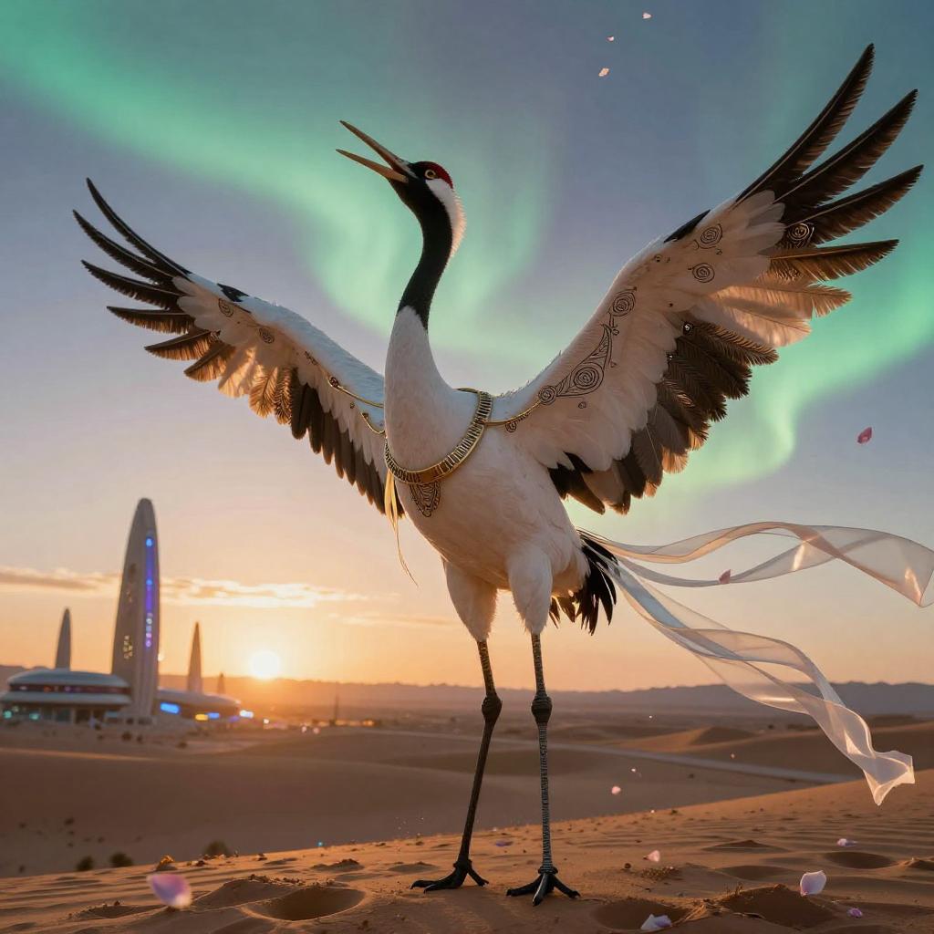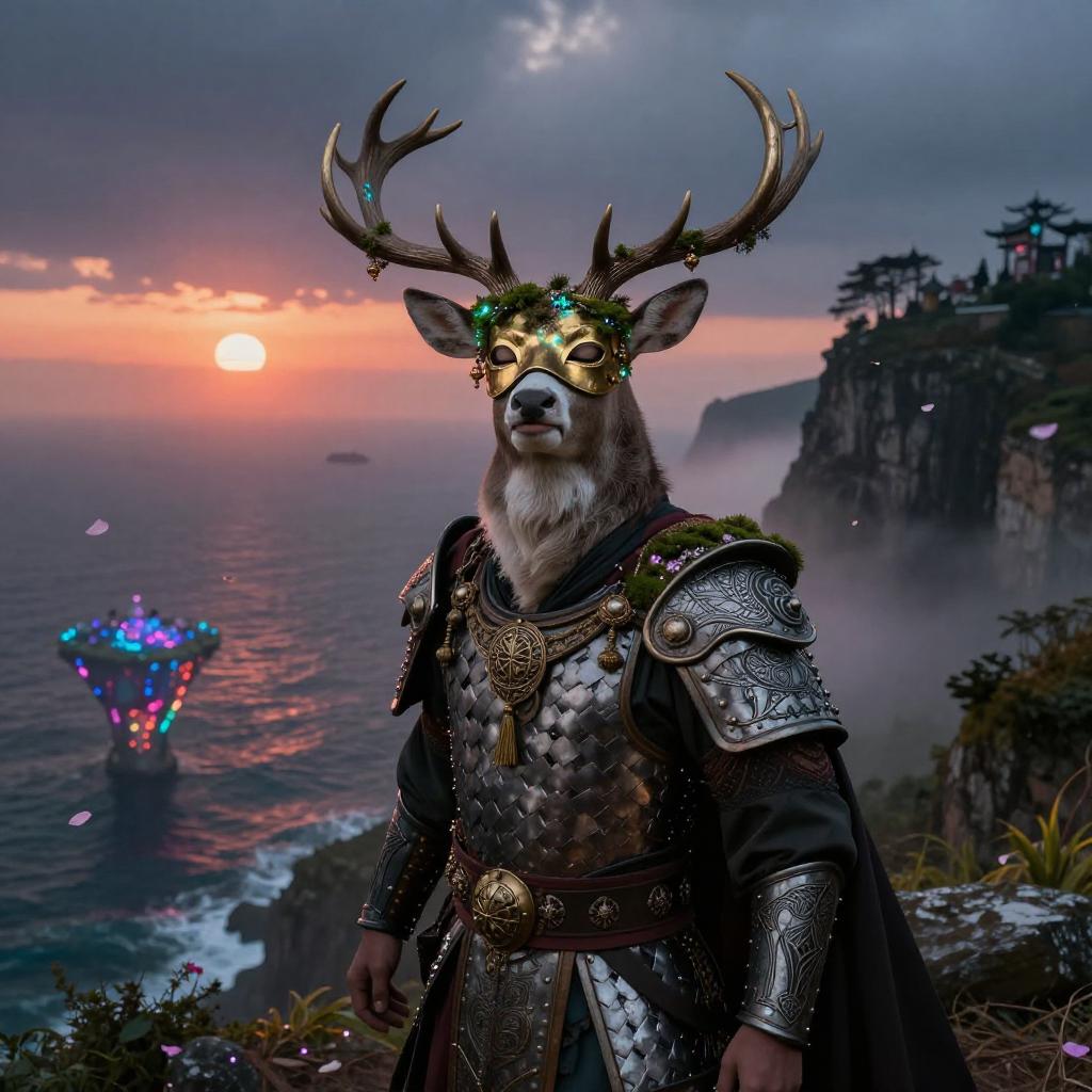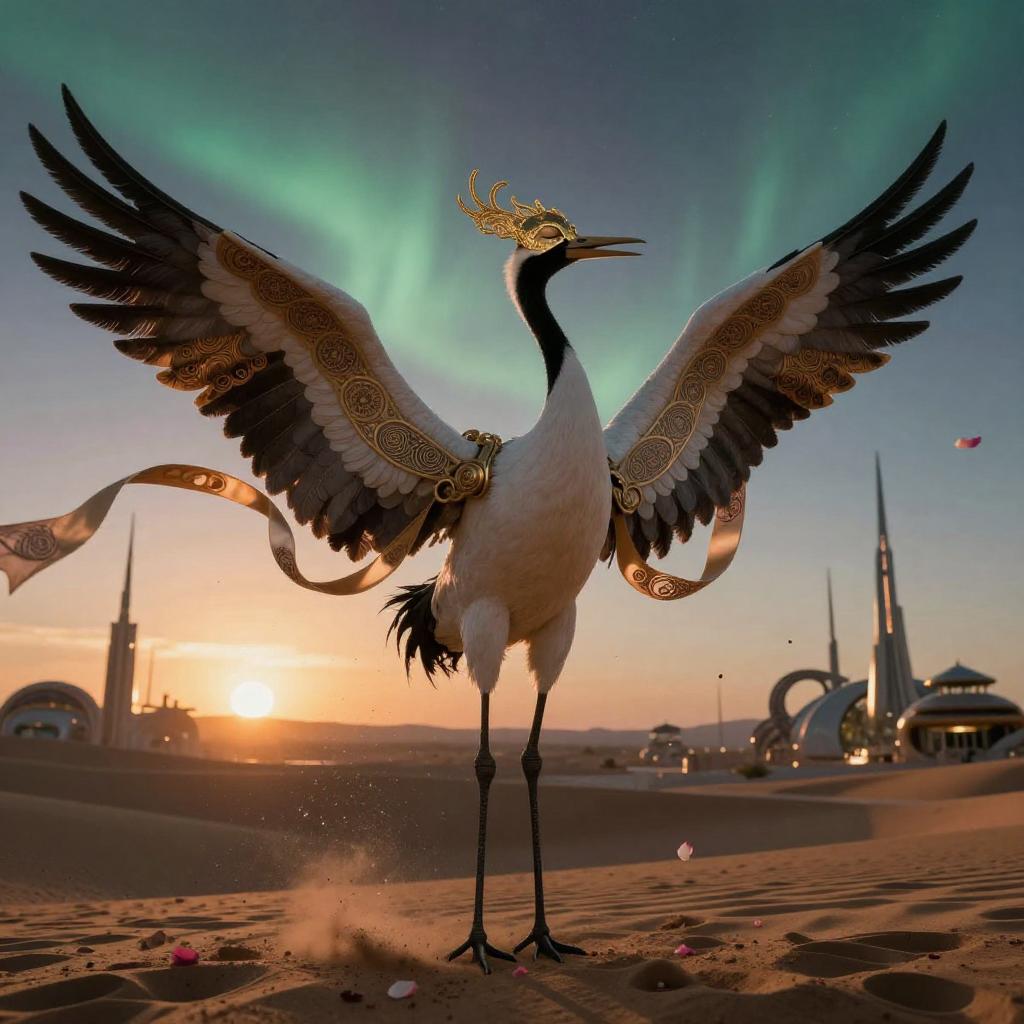 Best quality, masterpiece, ultra high res, raw photo, beautiful and aesthetic, deep shadow, dark theme, (photorealistic:1.4), porcelain-masked marionette ballerina with articulated brass joints and a faintly cracked ivory face, wearing tattered alabaster satin tutu reinforced with alloy corsetry, zentangle-etched ribbon streamers and petite brass pointe shoes, soft smile, open mouth, closed eyes, ((chiaroscuro, backlight, twilight, petals floating)), graceful poise, evocative atmosphere, magnetic presence, captivating mystique, intricate zentangle patterns, astonishing level of detail, striking perspective, a chaotic masterpiece balanced by harmony, vibrant color palette, ((outdoors)), abandoned glass greenhouse overrun with neon orchids, bioluminescent moss and shattered skylights revealing a distant neon futurist skyline, rain-misted panes and drifting petals, inspired by futurist architecture