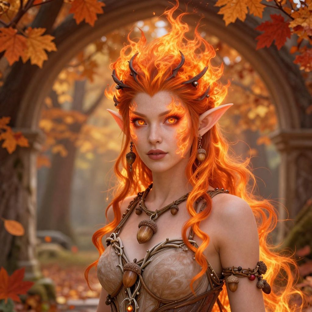 Autumn Eladrin Elf with Fiery Hair and Eyes