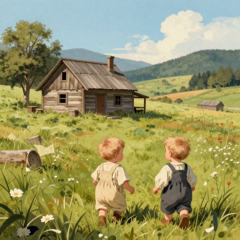 Field Of View Eunice and Toonis, Twin babies born in an appalachain shack in 1929, book illustration, 4k uhd,