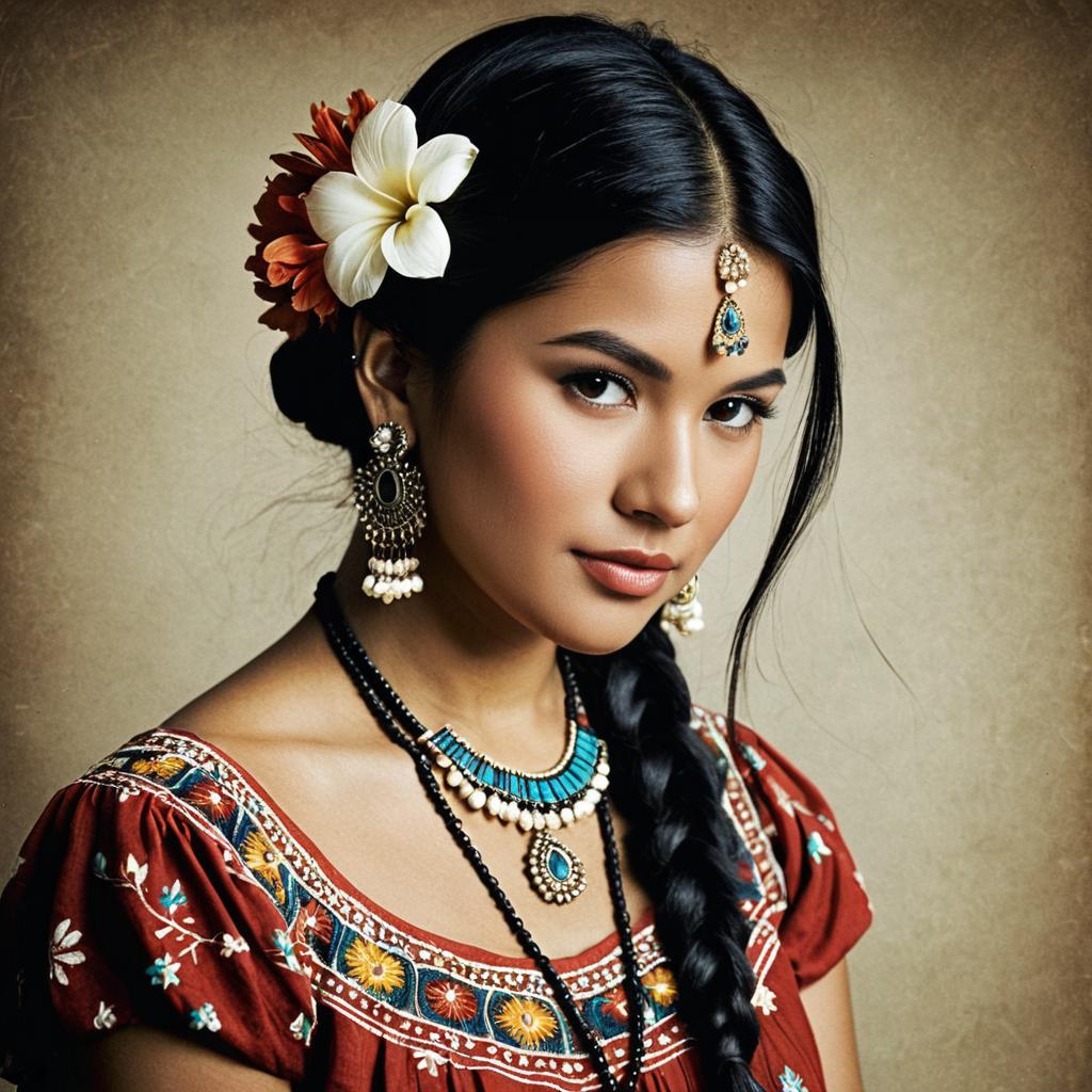 Indian Style Woman with Jewelry and Floral Hair Ornament