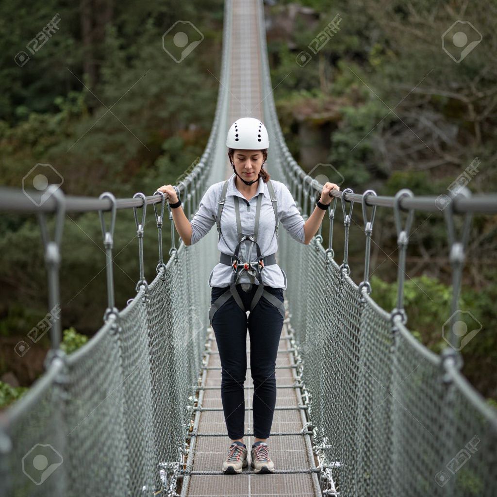 Free Woman Hiking In Suspension Bridge Royalty Free Stock Photo - 27316215
