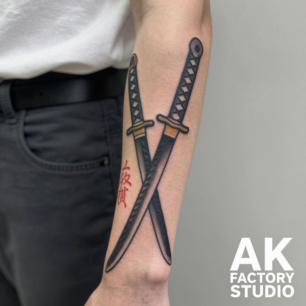 Detailed Samurai Sword Tattoo on Forearm