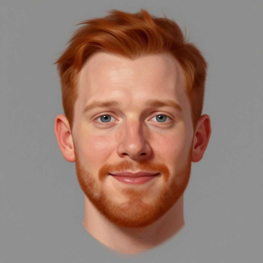 Portrait of a super friendly man by greg rutkowski, he is about 30 years old, english, short red hair, blue eyes, short red beard, highly detailed portrait, digital painting, artstation, concept art, smooth, sharp foccus ilustration, artstation hq