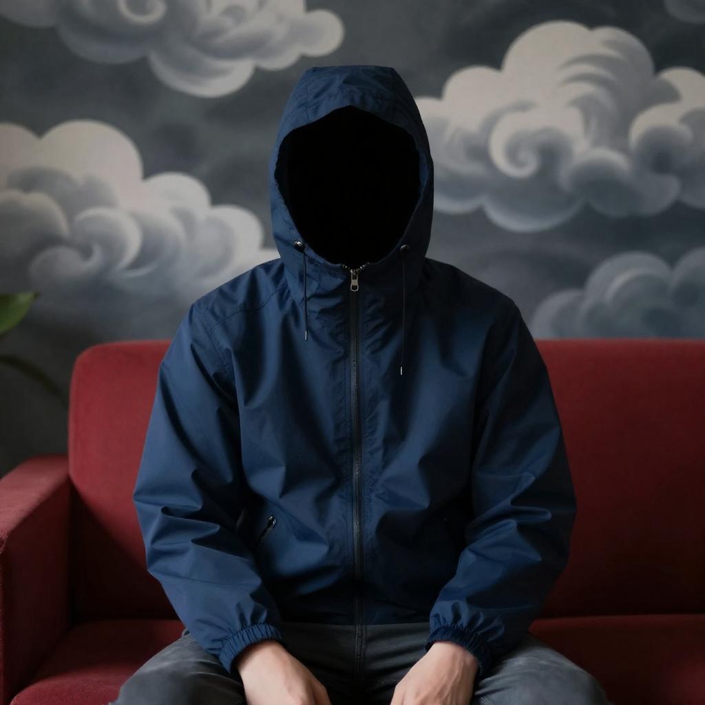 Two masked, hooded figures stand in a snowy landscape. Both wear dark, ured cloaks and gloves, with one having a brown scarf and the other a gray scarf. They have crossed arms, and their faces are obscured by masks. Leafless bushes and snow-covered ground are in the background.
