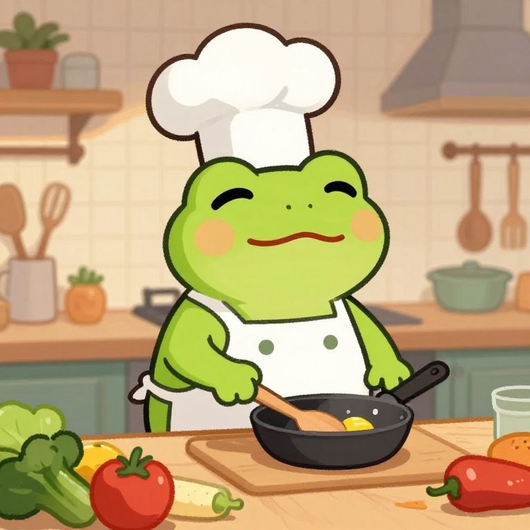 Banana cartoon character chef in a busy kitchen, tossing pancakes with a big grin, warm colors with detailed kitchen background, humorous and lively illustration style