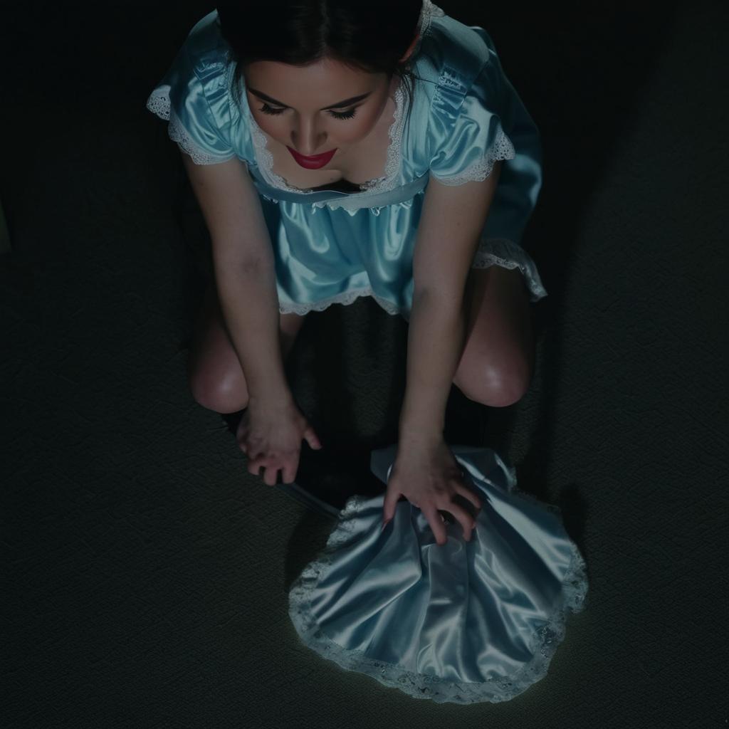Squatting Girl in Nightgown Viewing