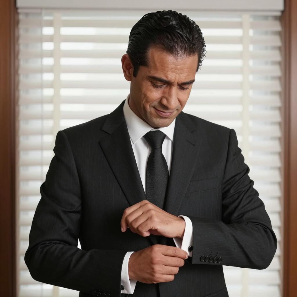 Middle-aged Man in Suit Concentrating on Small Object