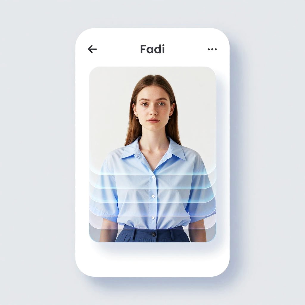 Photo clothes remover visualization, user interface showing layer-by-layer clothes removal from a portrait image, minimalist clean design, soft gradients, high-tech hologram effect, professional photo editing theme, digital art style