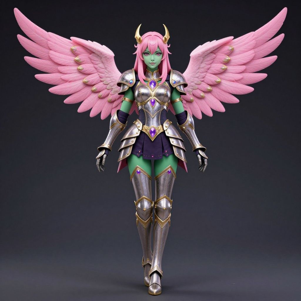 Pink-Haired Angel Knight in Fantasy Armor