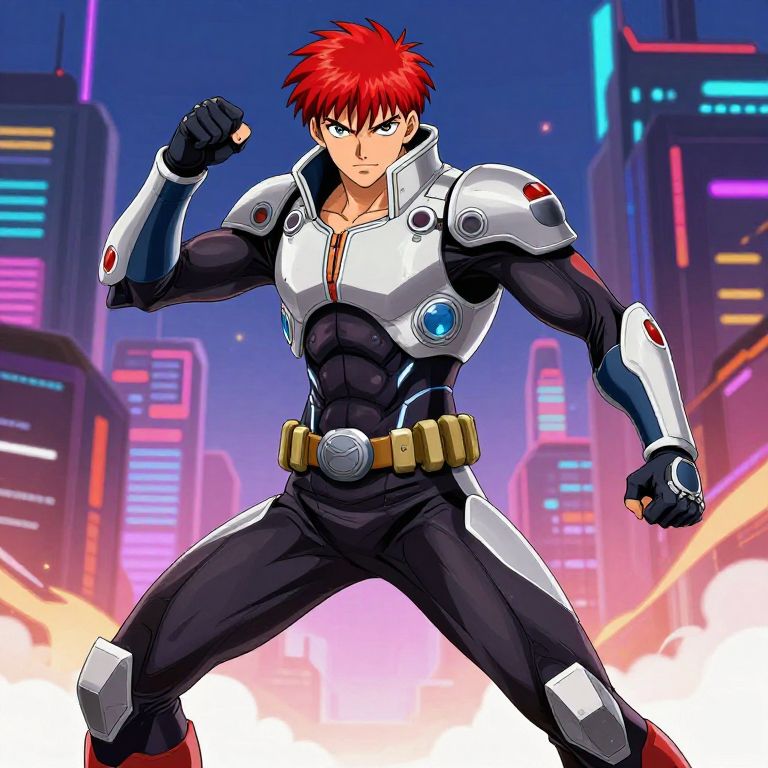 Anime-inspired latest: A high-energy battle scene in a cyberpunk metropolis, with two anime-style fighters using advanced weapons and flashy moves, dynamic poses, and glowing effects, rendered in a detailed, fluid animation-style with sharp contrasts and bold lines.