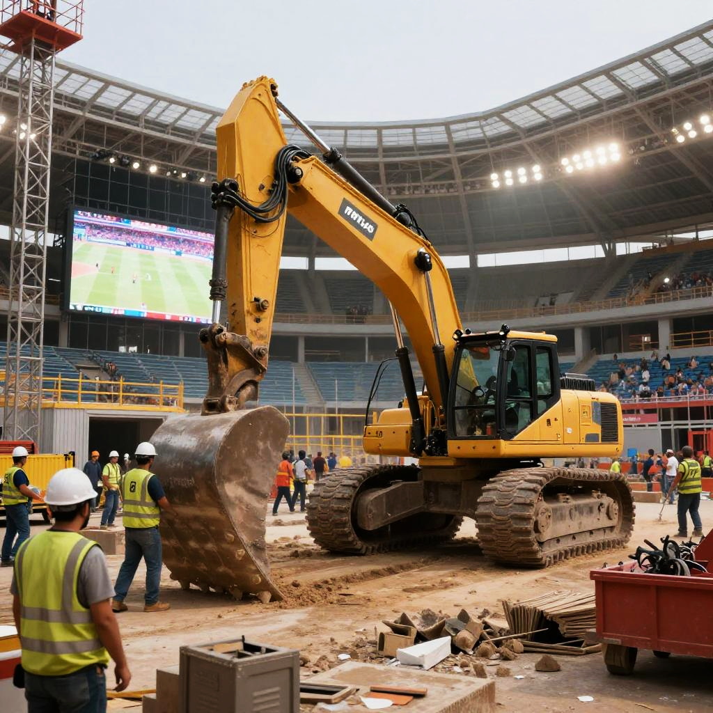 Stadium Construction with Heavy Machinery