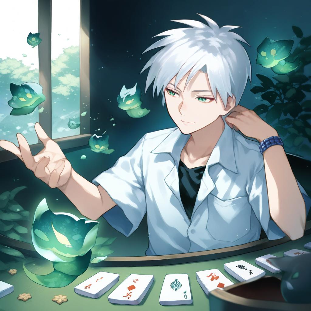 Akagi shigeru, fukumoto mahjong, 1boy, short hair, white hair, grey hair, medium bangs, collared shirt, by artist kito (sorahate), animagine
