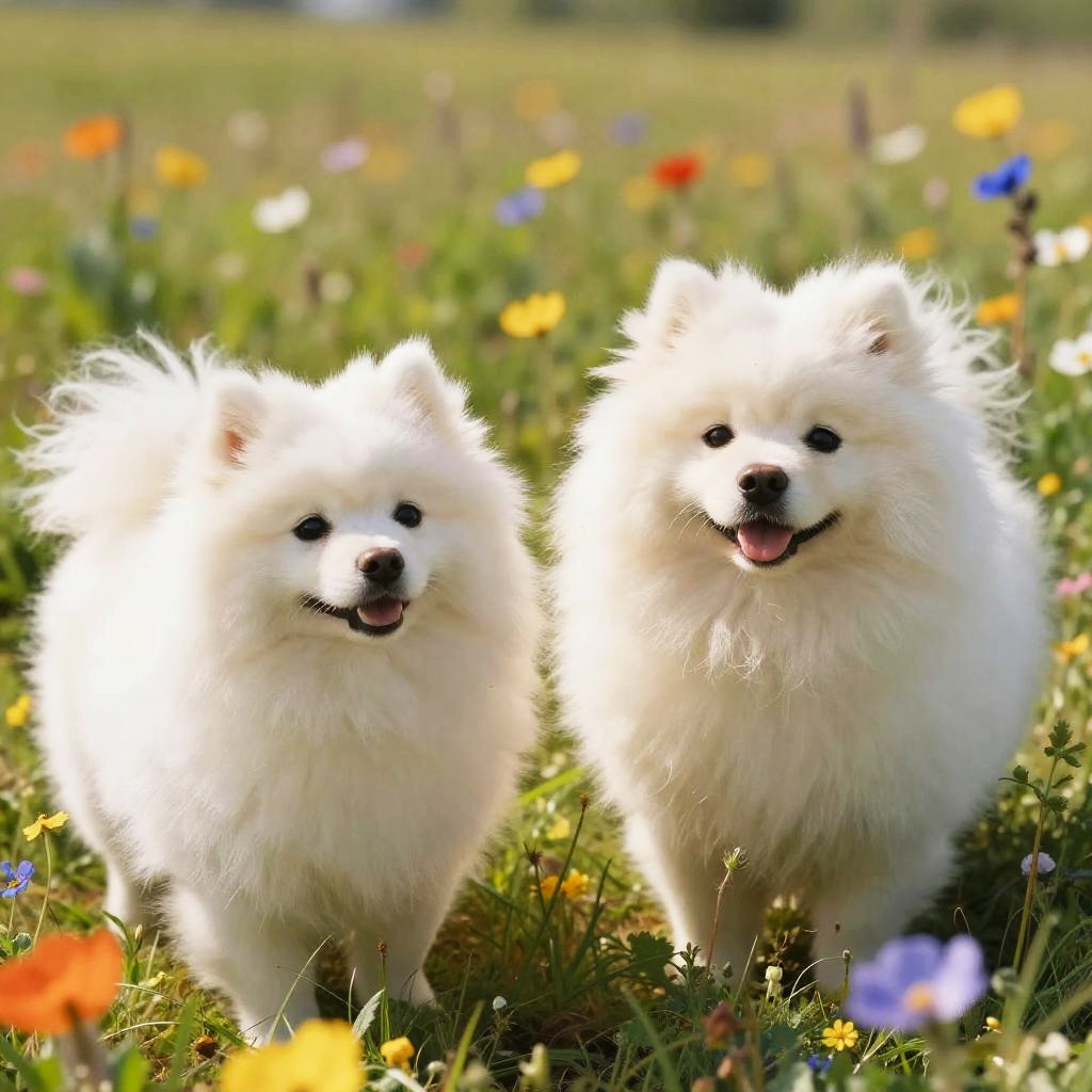 Chihuahua terrier mixes playing in a sunny park, small energetic dogs with playful expressions, detailed fur textures, vibrant green grass and bright blue sky background