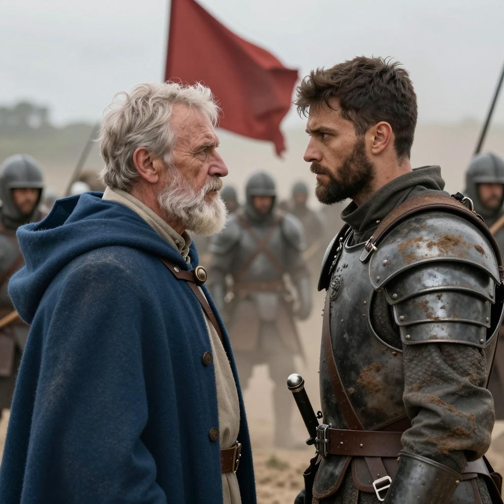 Intense Bearded Men Amidst Soldiers