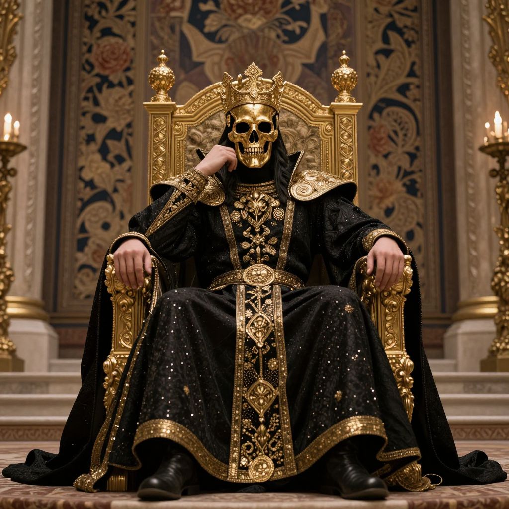 King, skull instead of head, wearing crown, royal, majestic, science fiction, vivid colors, wide angle, super highly detailed, professional digital painting, artstation, concept art, smooth, sharp focus, no blur, no dof, unreal engine 5, photorealism, hd quality, 8 k resolution, cinema 4 d, 3 d, beautiful, cinematic, art by artgerm and greg rutkowski and alphonse mucha and loish and wlop