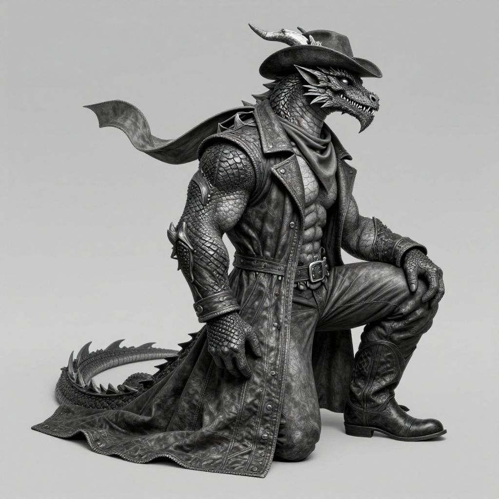 Realistic Muscular Anthro Dragon in Cowboy Attire