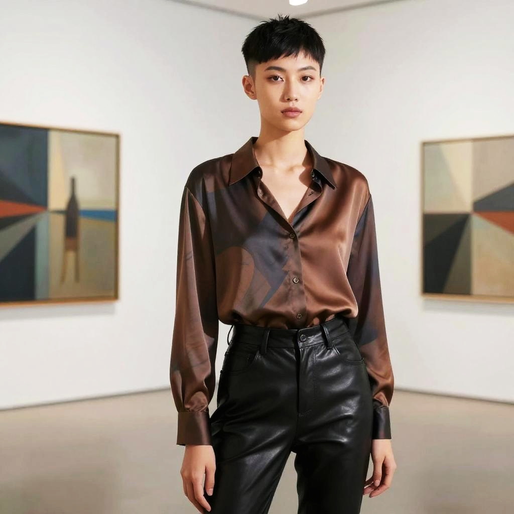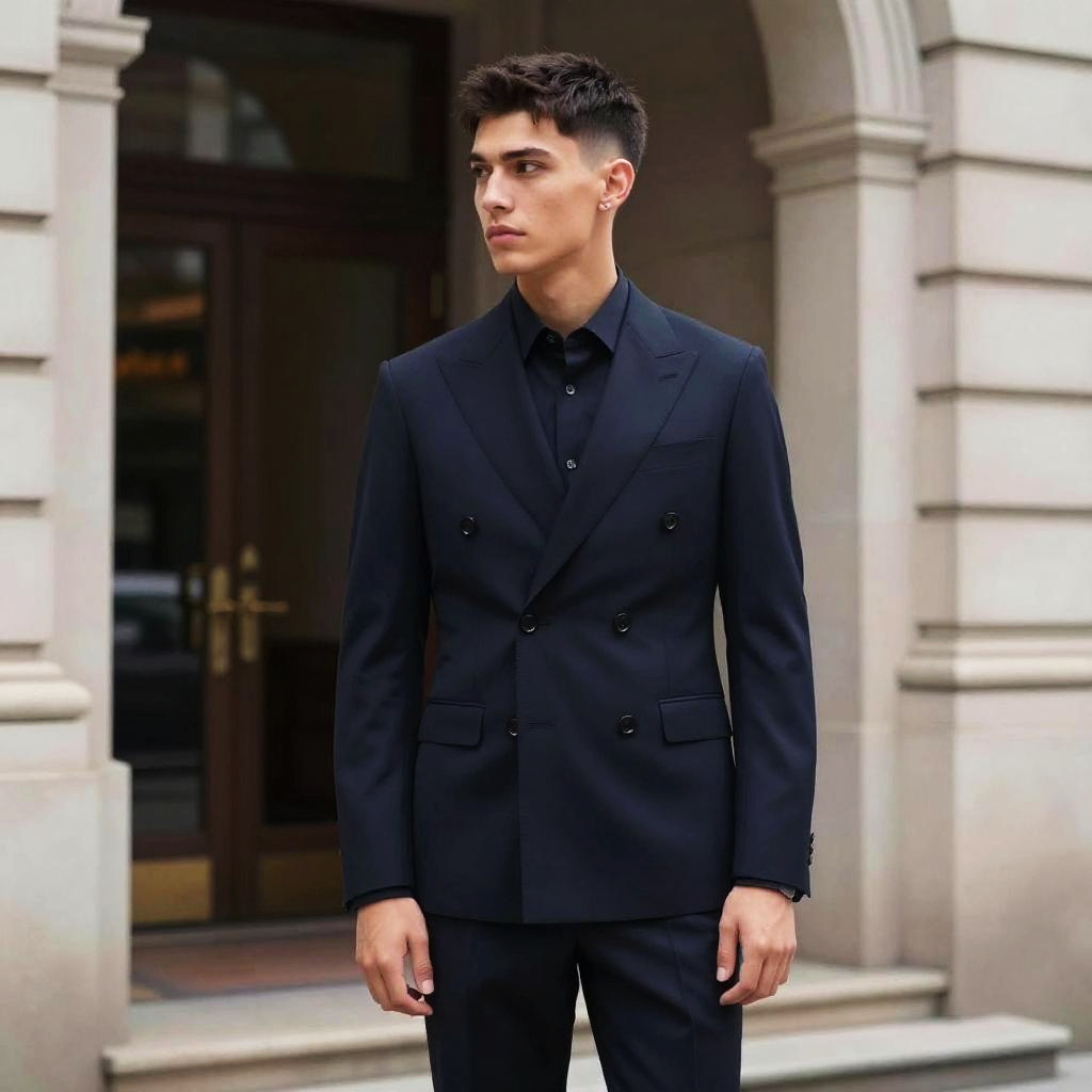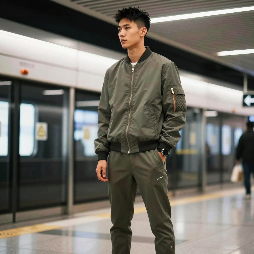 Shadow Fade hairstyle on young man, wearing modern bomber jacket and slim-fit jeans, in downtown graffiti wall, captured in fashion editorial style with soft natural morning light.
