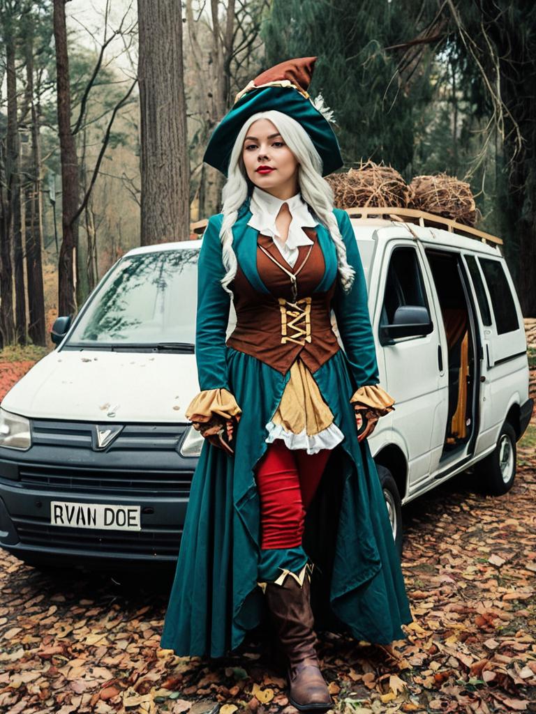 Sexy cosplay woman character wearing Rip Van Winkle costume. Realistic photo. Jane Doe dressed as Rip Van Winkle --sref 1388