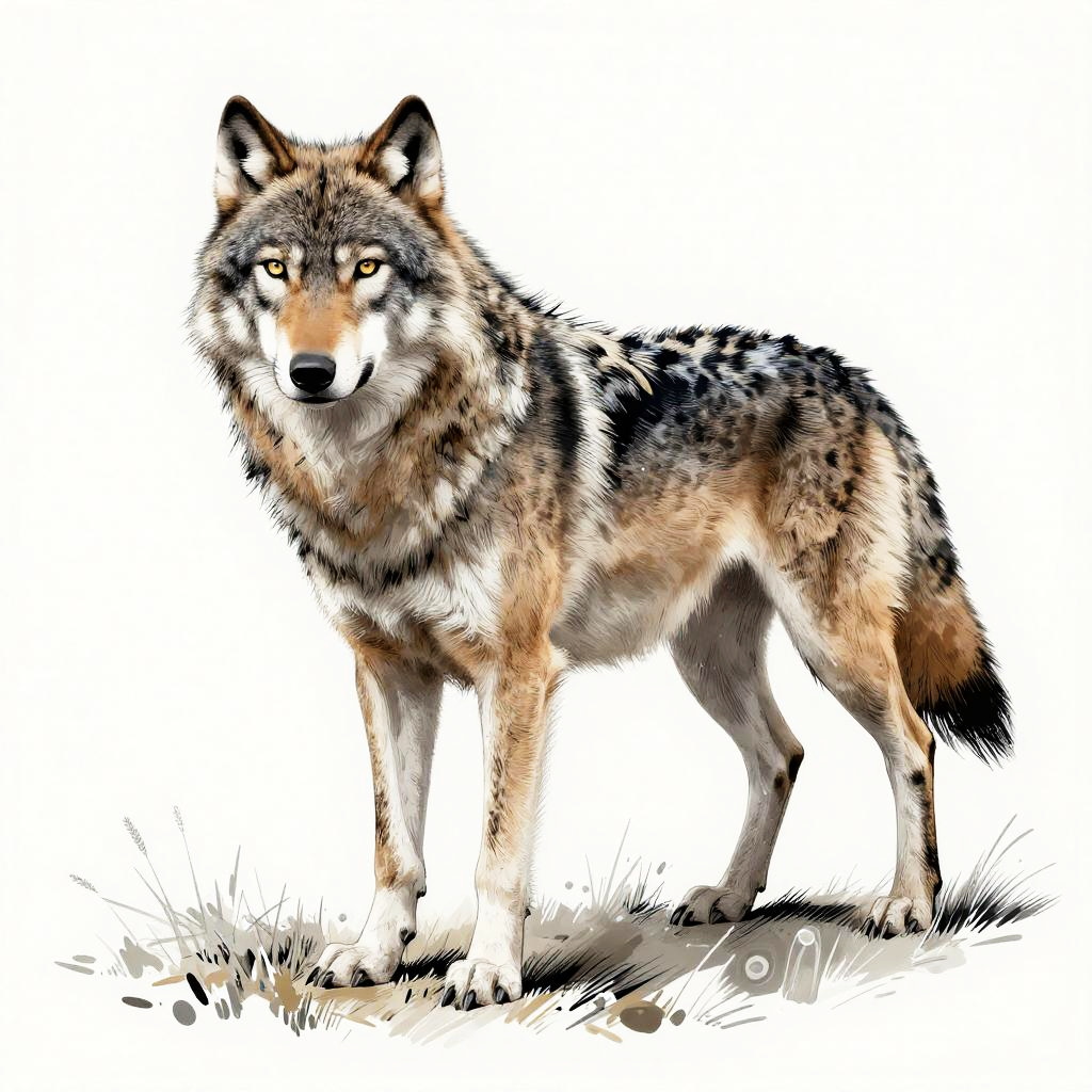 Romanticism illustration of wolf by Caspar David Friedrich, Eugène Delacroix, high detail, pop art influences.