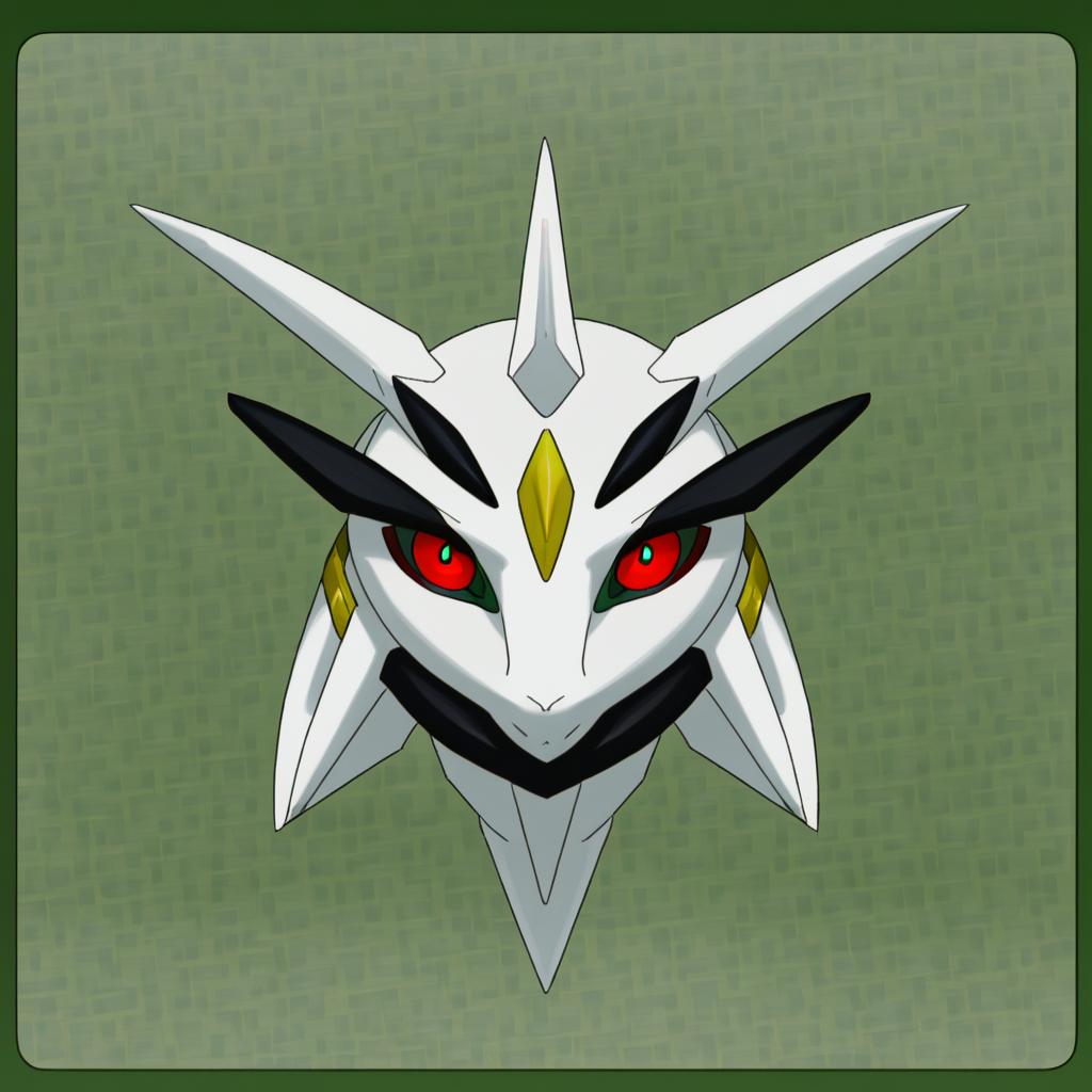 Arceus, pokemon, no humans, red eyes, pokemon (creature), green sclera, by artist po-ju, anime