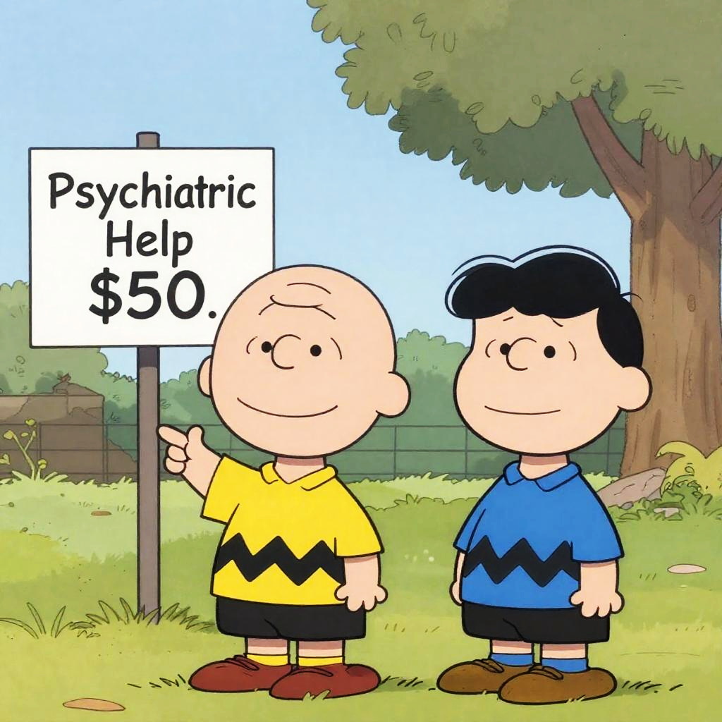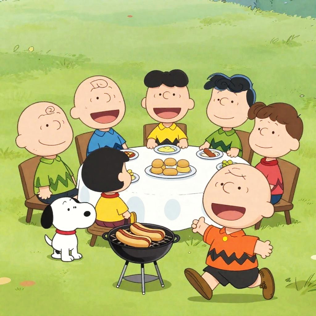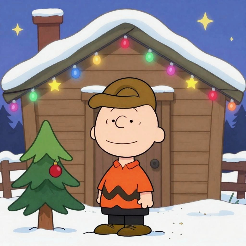 Cartoon of Charlie Brown from "A Boy Named Charlie Brown." Charlie Brown, white with black ears, stands on a bed, biting a pink pillow. Background includes a blue wall and a wooden headboard. He has a determined expression.