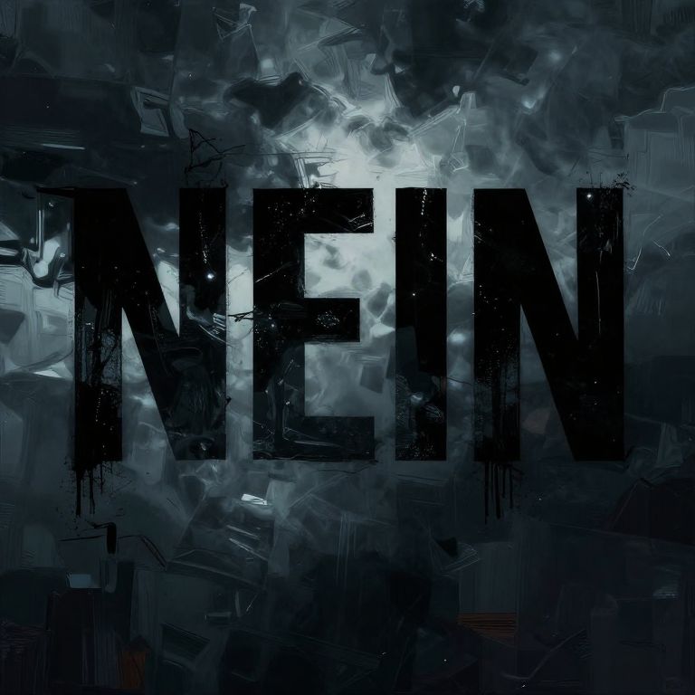 Nein, a surreal dramatic scene with bold typography in dark stormy colors, abstract expressionism style, intense shadows and highlights, conveying refusal and strong emotion, cinematic lighting, high detail, digital art.