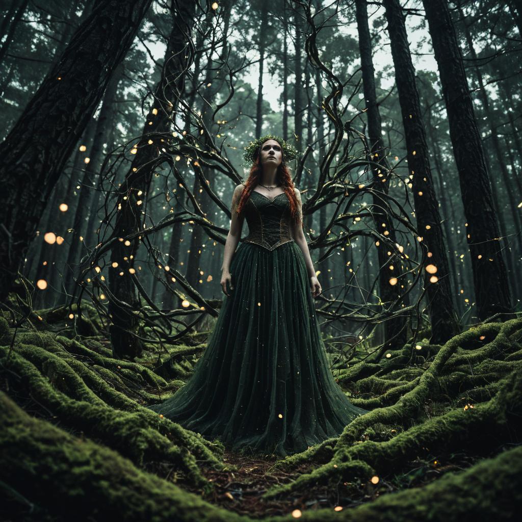 Fairy Queen in a Dark Botanical Forest