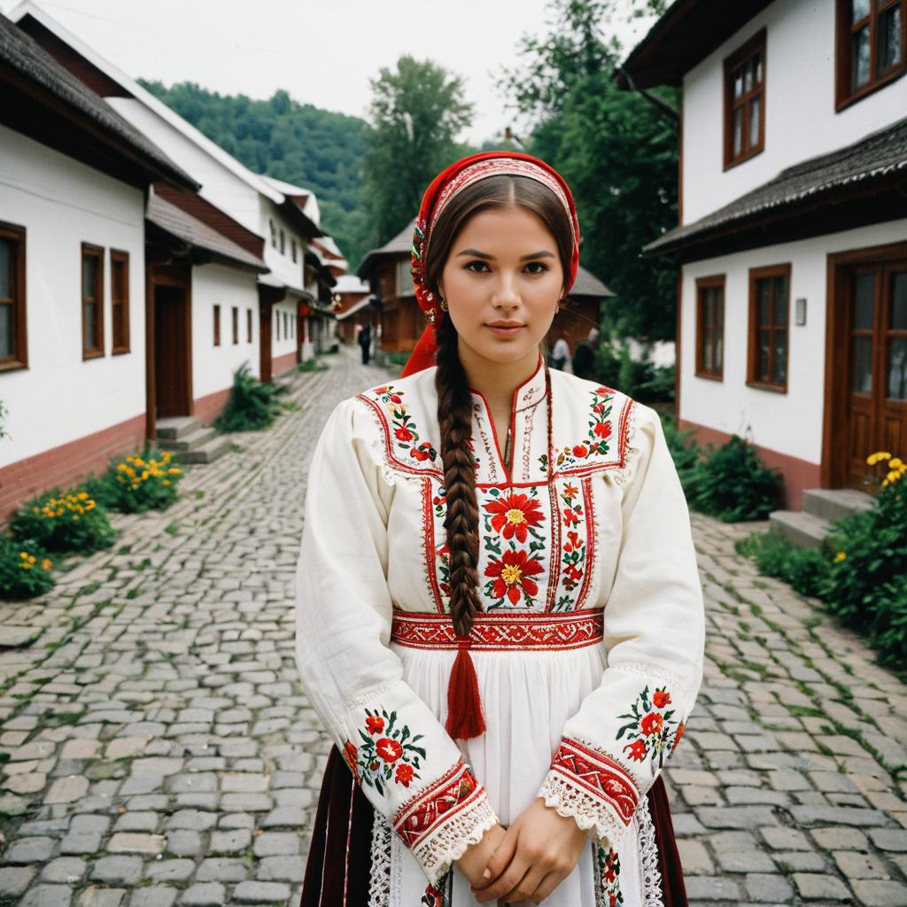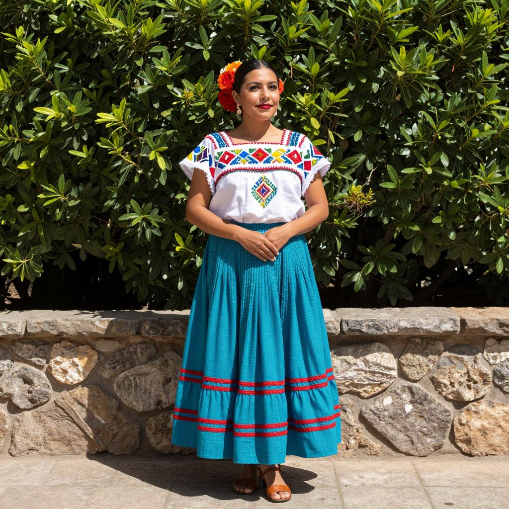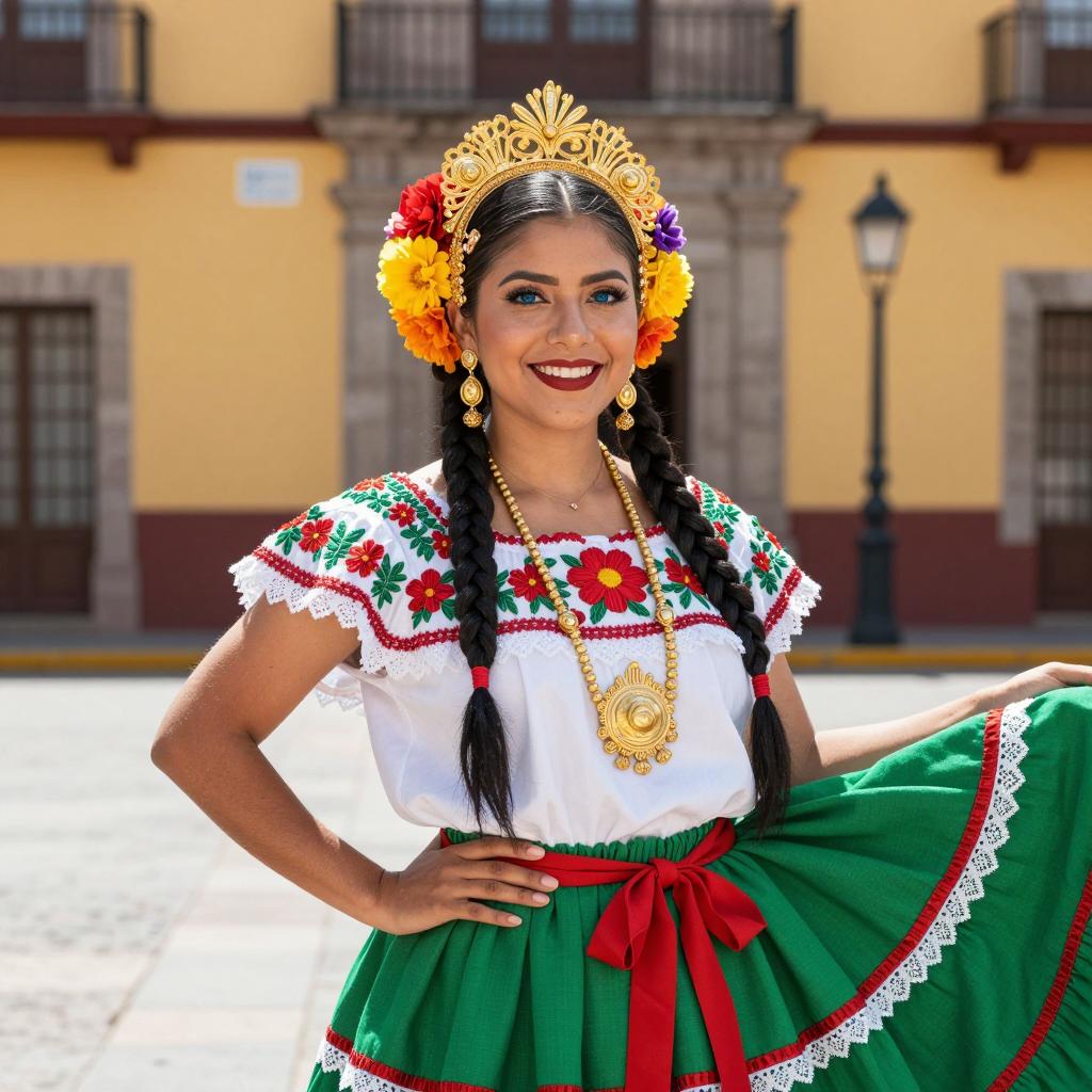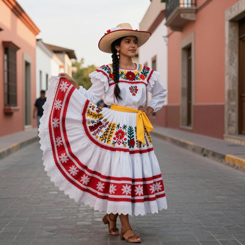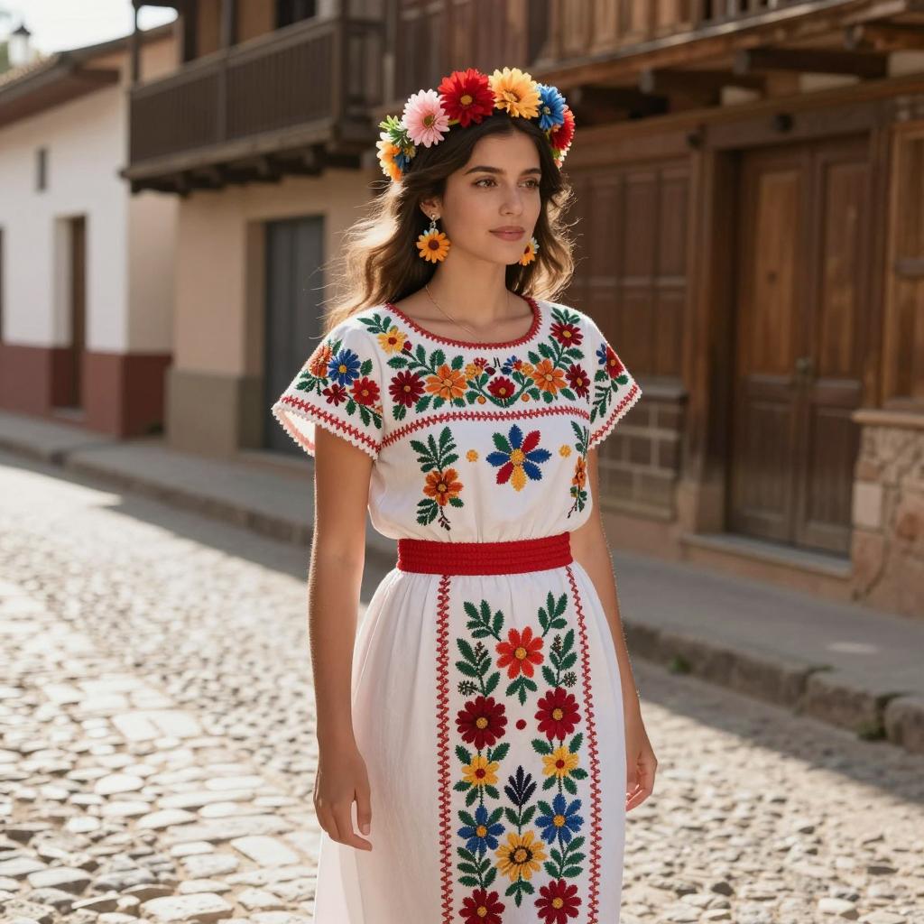 Vibrant Festival Dress on Sunlit Street