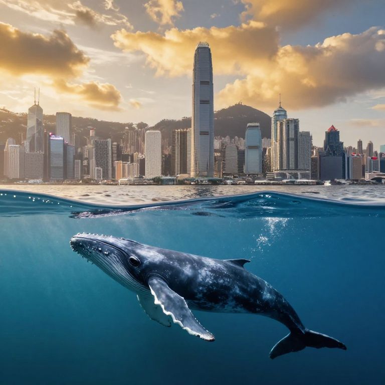 Whales Near Majestic Cityscape at Sunset