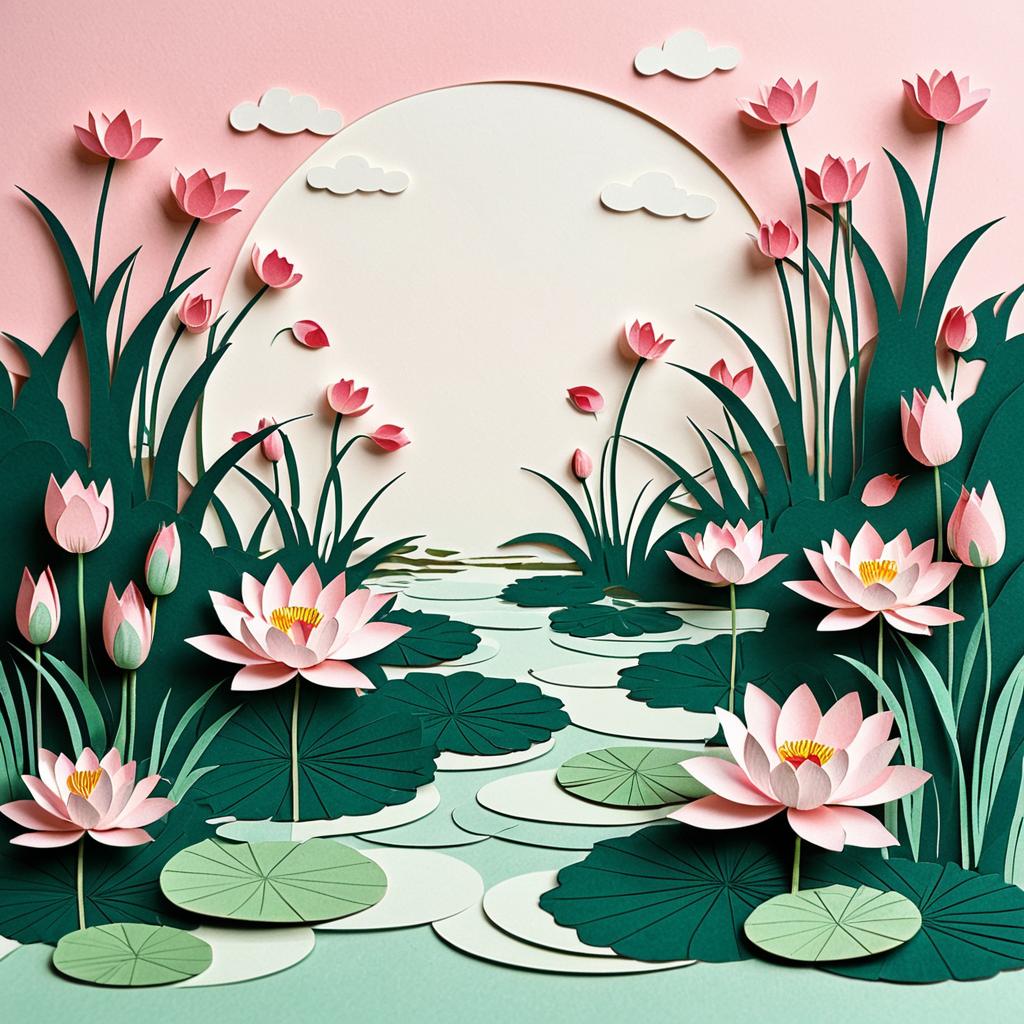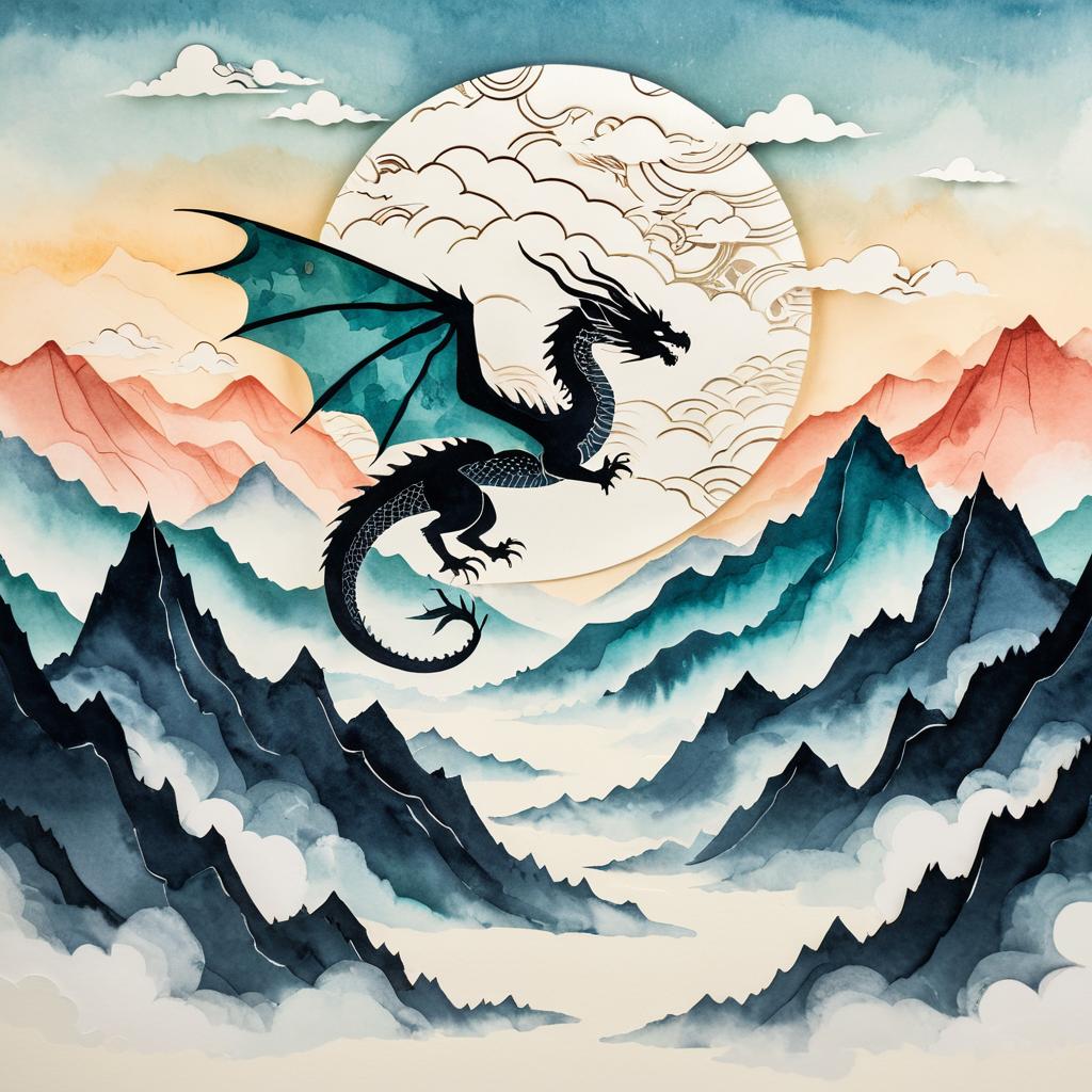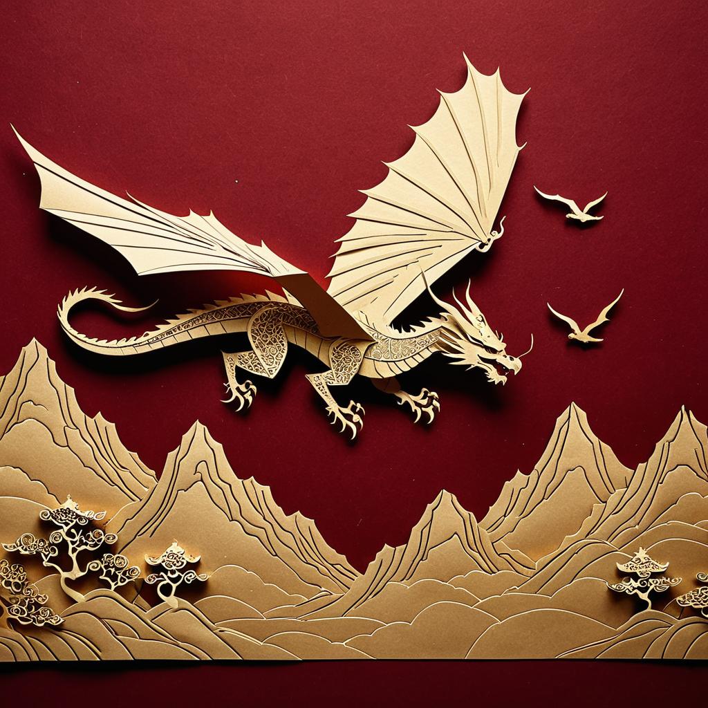Paper Kirigami of Mystical Desert Dunes with Crescent Moon