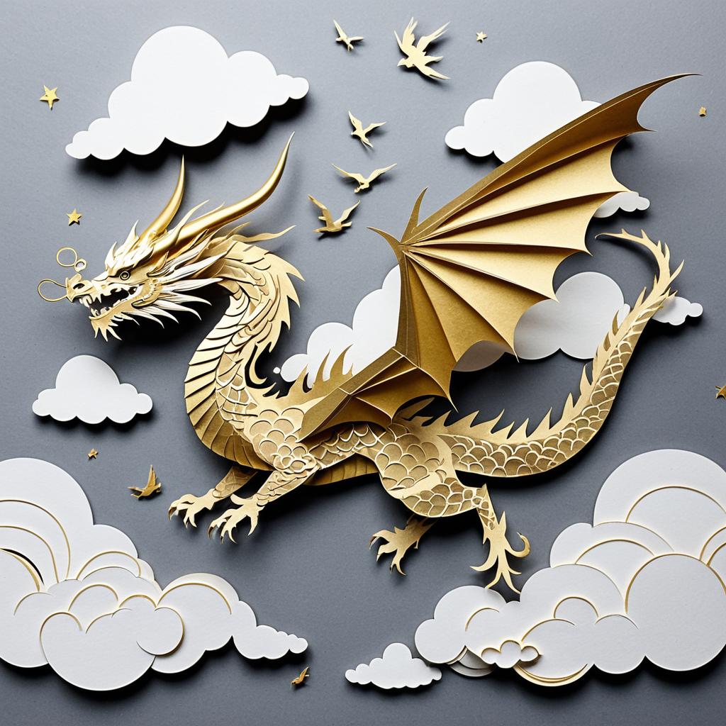 Multi-dimensional paper kirigami craft of mystical desert dunes under a crescent moon, Chinese illustration on deep purple background, in the style of Classical Chinese ink painting with gold accents and fine brushwork, romantic and dreamy atmosphere.