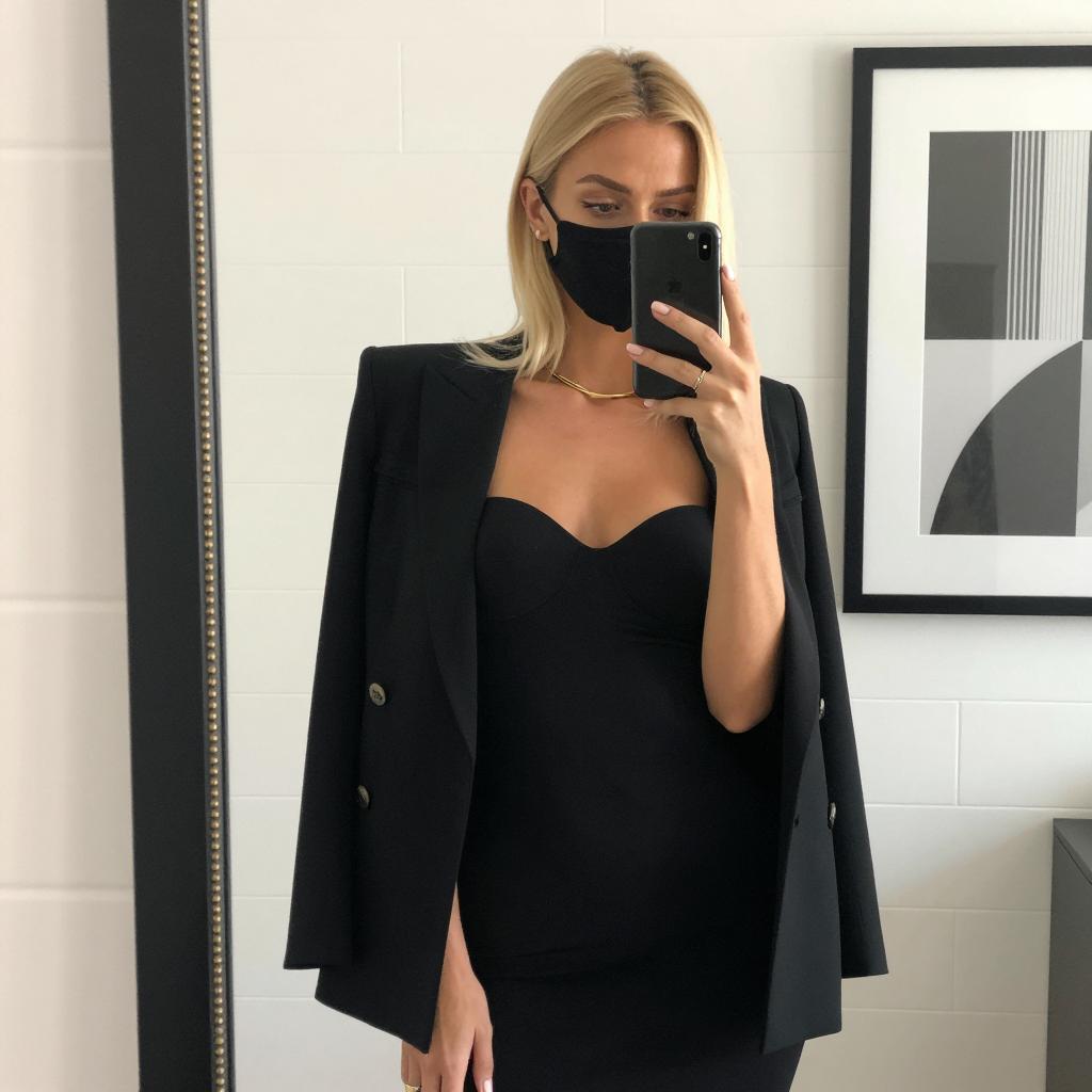 Stylish Woman Taking Mirror Selfie in Black Outfit