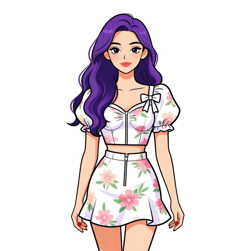 Woman with pretty face and pretty hair. Woman, casual summer style, sleeveless romper in navy and white gingham pattern, sweetheart neckline, keyhole cutout at torso, adjustable spaghetti straps, fitted waist, straight-cut shorts, plain white background. --sref 1467